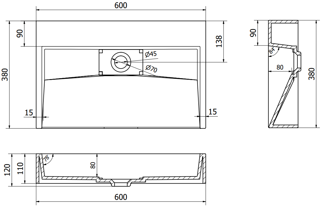 Mexen Ava is an elegant countertop basin with dimensions of 60 x 38 cm, made from durable black conglomerate. Thanks to its rectangular shape, it adds a modern character to any bathroom. It features a long-lasting protective coating and a glossy finish, ensuring easy cleaning and an elegant look. The lack of tap and overflow holes makes it an ideal solution for minimalist designs. With a height of 11 cm and a depth of 8 cm, it is both functional and aesthetic.