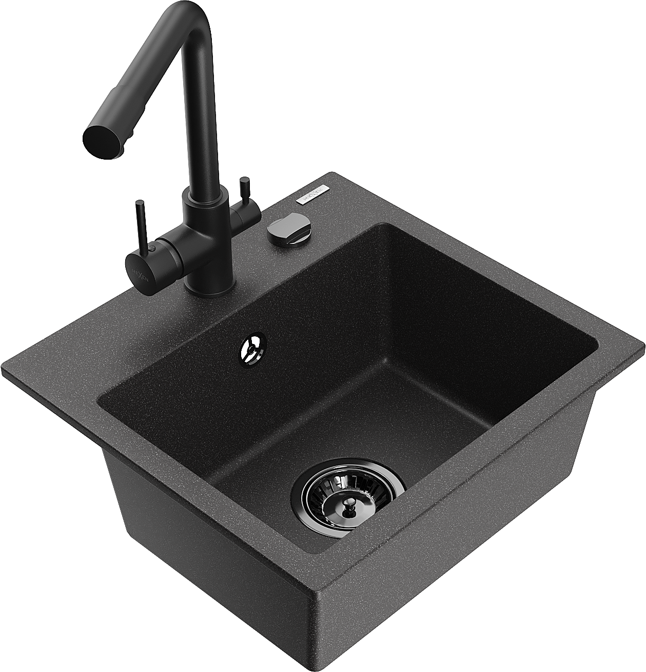 Mexen Milo 1-bowl granite sink with Duero kitchen tap, black speckled - 6505-76-671600-70-B