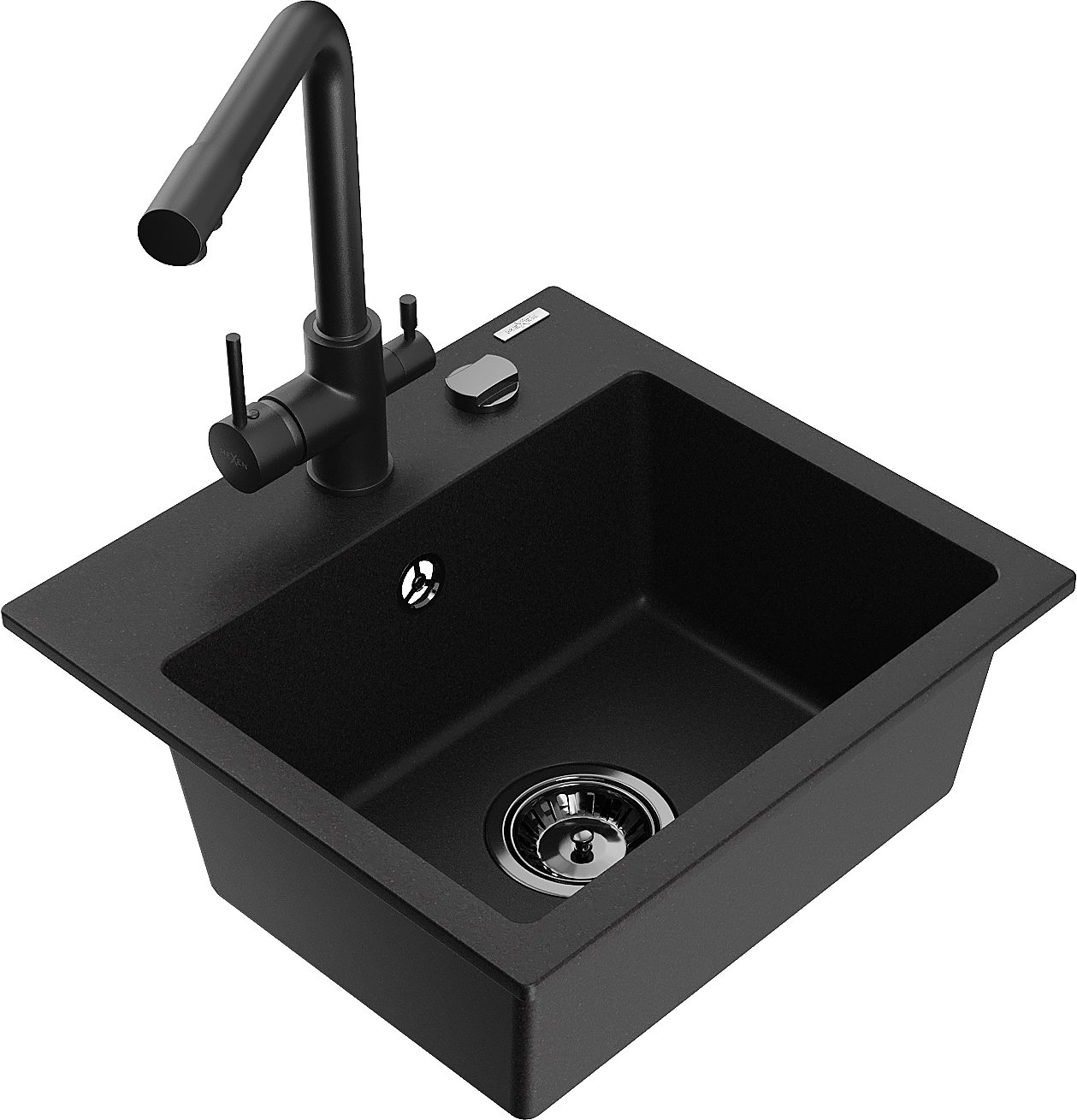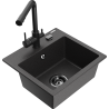 Mexen Milo 1-bowl granite sink with Duero kitchen tap, black - 6505-77-671600-70-B