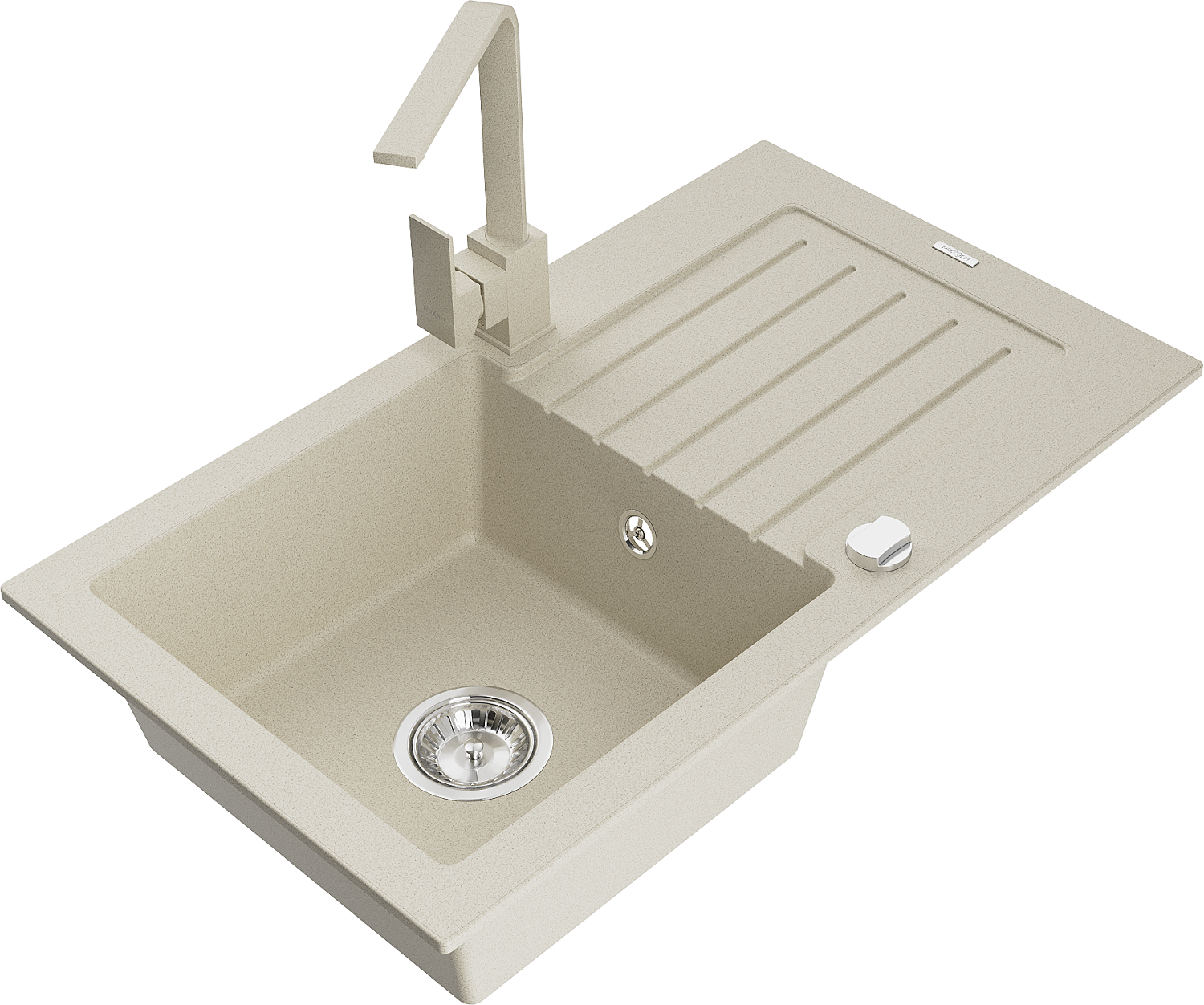 Mexen Pablo 1-bowl granite sink with drainer and Rita kitchen tap, beige - 6510-69-670300-69