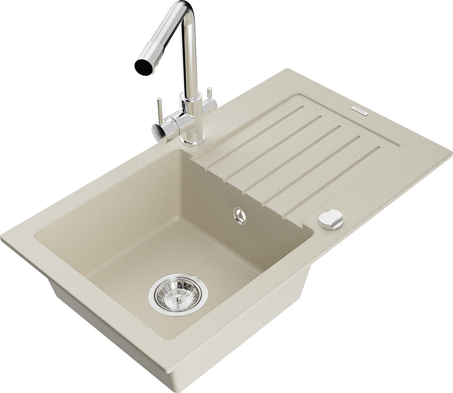 Mexen Pablo granite kitchen sink 1-bowl with drainer and Duero kitchen tap, beige - 6510-69-671600-00
