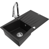 Mexen Cesar granite sink 1-bowl with drainer and Elia kitchen tap, grey - 6514-71-670101-00