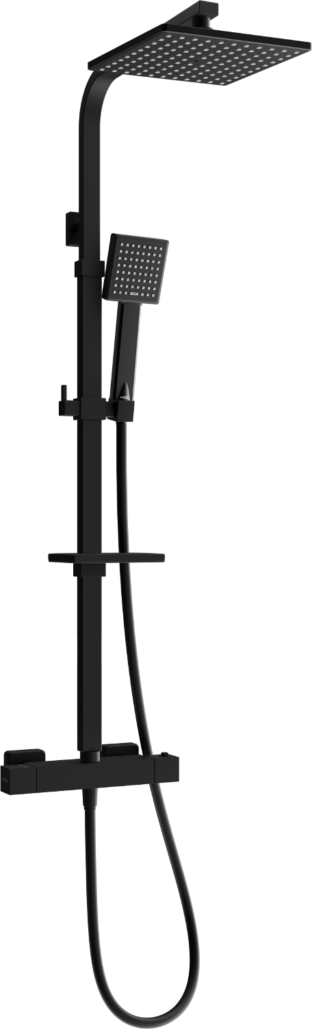 Mexen CQ45 exposed shower set with overhead shower and thermostatic mixer, black - 772504595-70