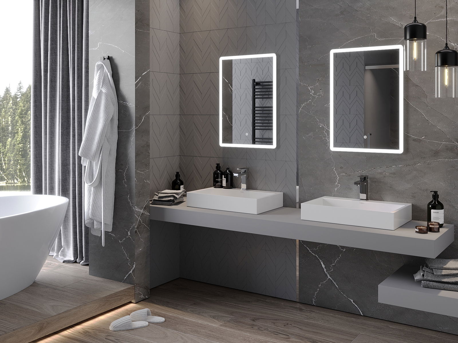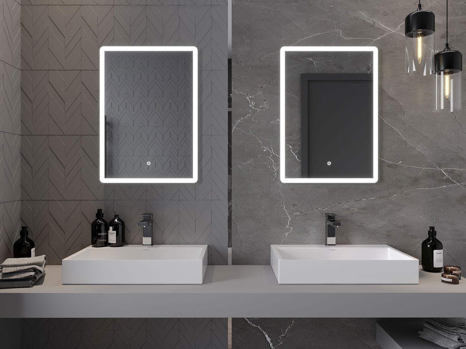Mirror lighting can be started in a simple and convenient way by touching the switch on the mirror surface. This allows for quick lighting, without having to reach for the further traditional lighting switch.