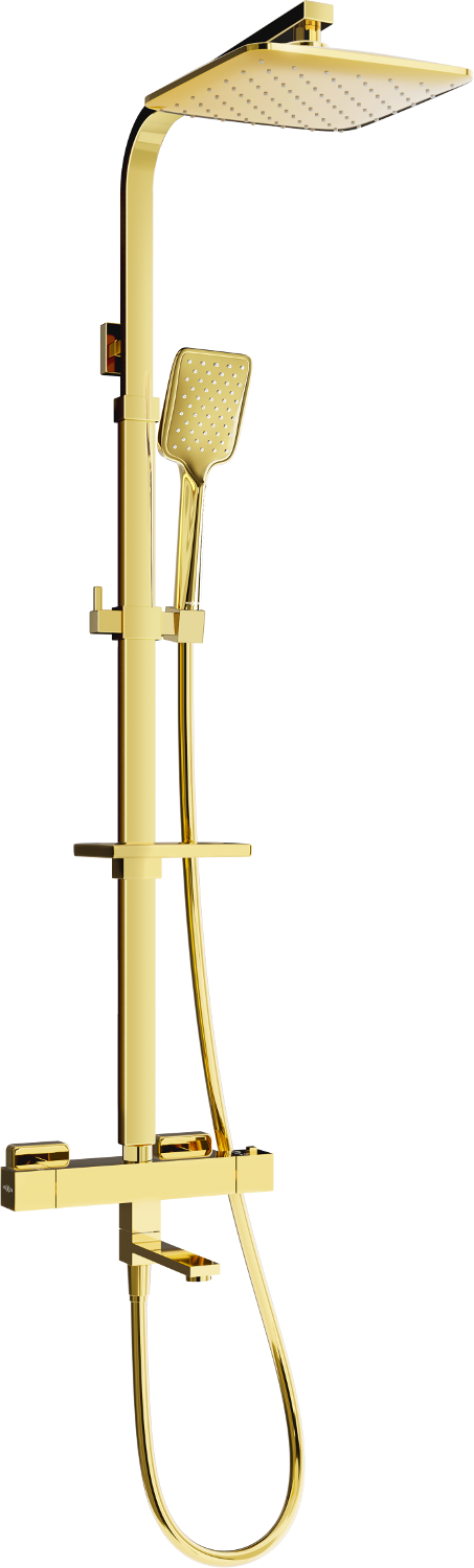 Mexen CQ62 bath-shower set with rainfall shower and thermostatic faucet, gold - 779106295-50