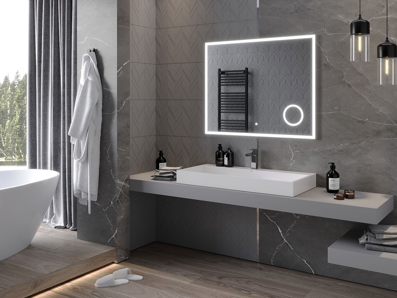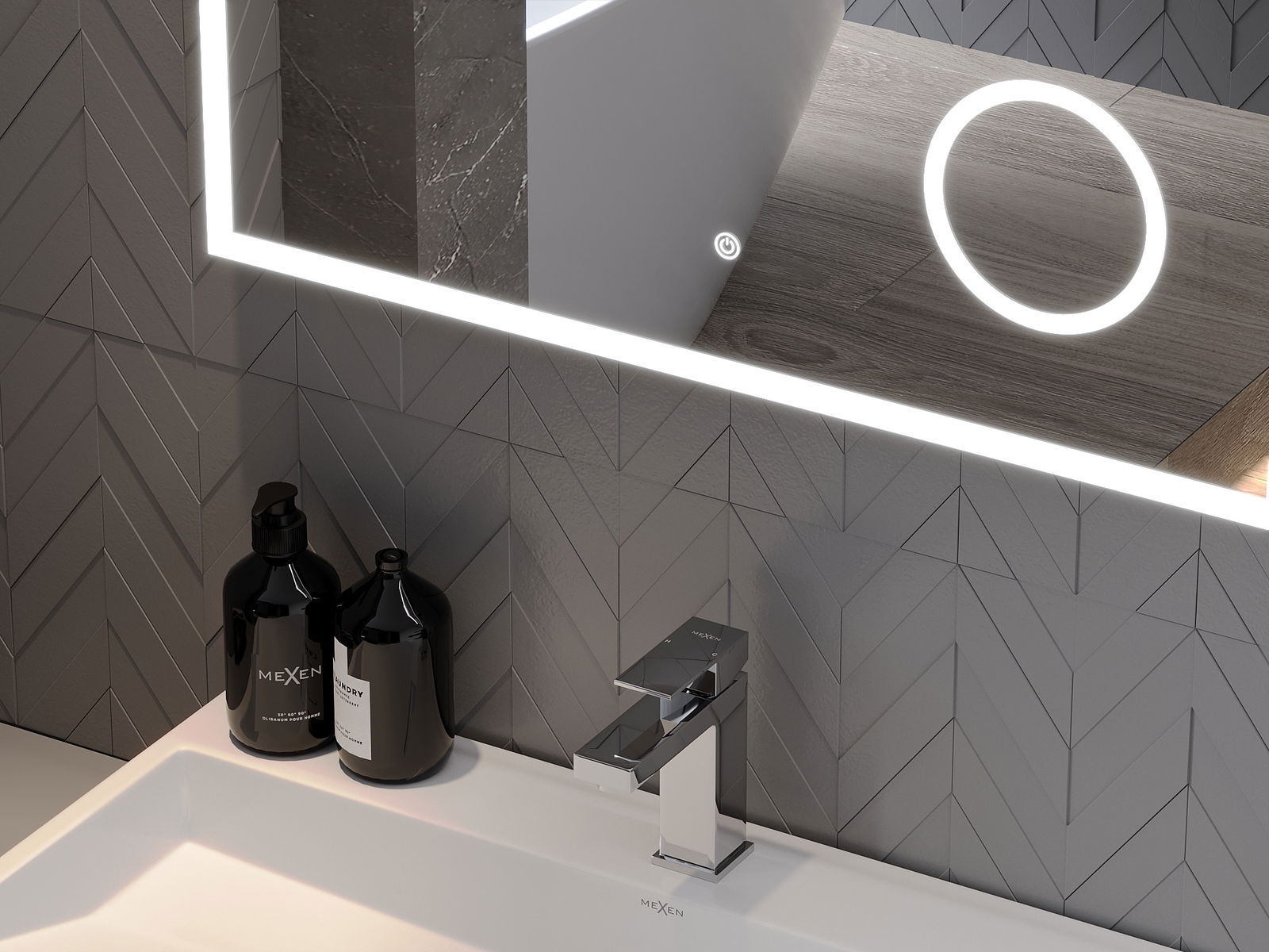 Mirror lighting can be started in a simple and convenient way by touching the switch on the mirror surface. This allows for quick lighting, without having to reach for the further traditional lighting switch.