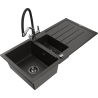 Mexen Andres 1.5-bowl granite sink with drainer and Duo kitchen tap, grey - 6515-71-671701-07-B