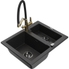 Mexen Carlos granite sink 1.5-bowl with Duo kitchen tap, black speckled - 6518-76-671701-57-B
