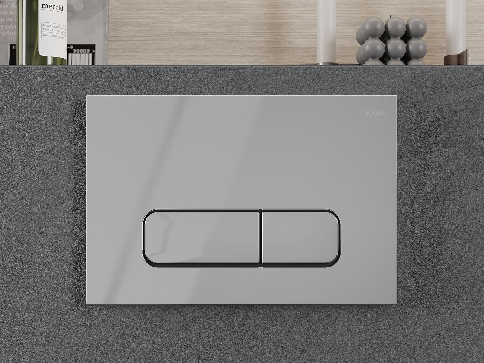 The button fits the frame from the Mexen Fenix Slim series, in which it is possible to install from the front. A popular and practical solution especially in bathrooms, where access to the button from the front is more comfortable.