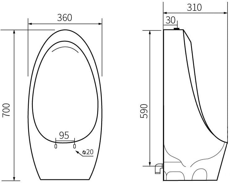 Mexen Lucas wall-mounted urinal, black matte - 37027070