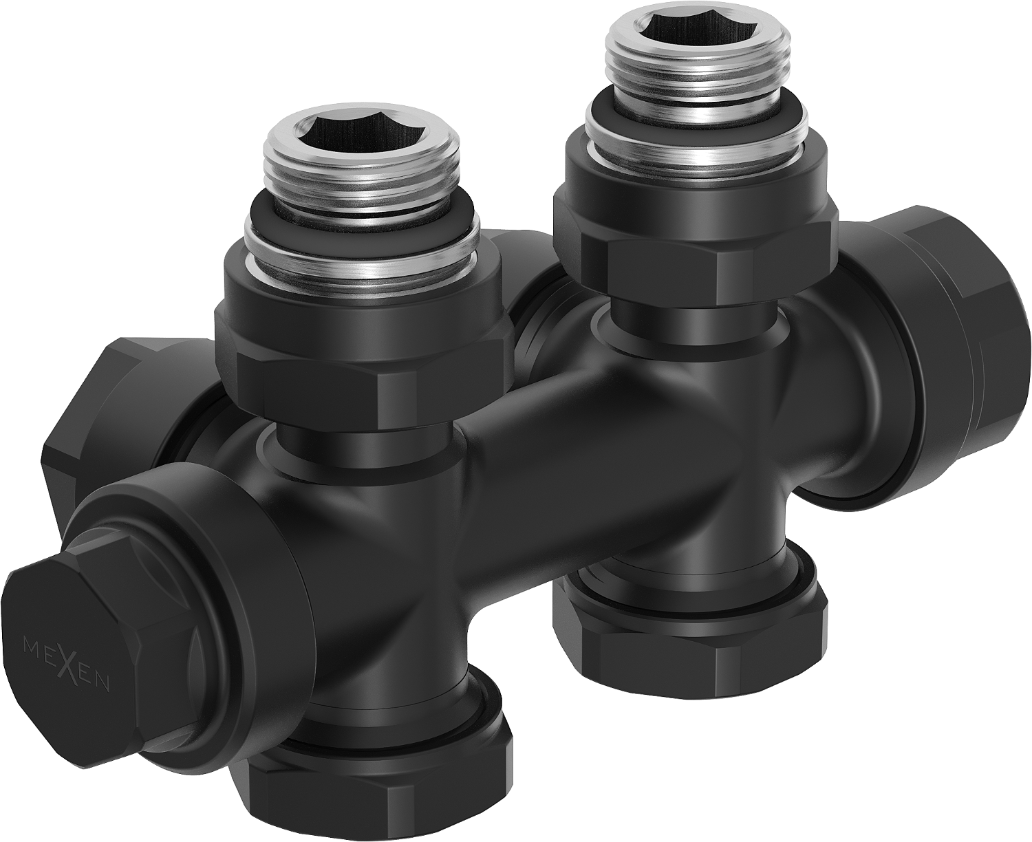 Mexen Uni-Term radiator valve angular/straight, Duplex, DN50, black - W908-000-70