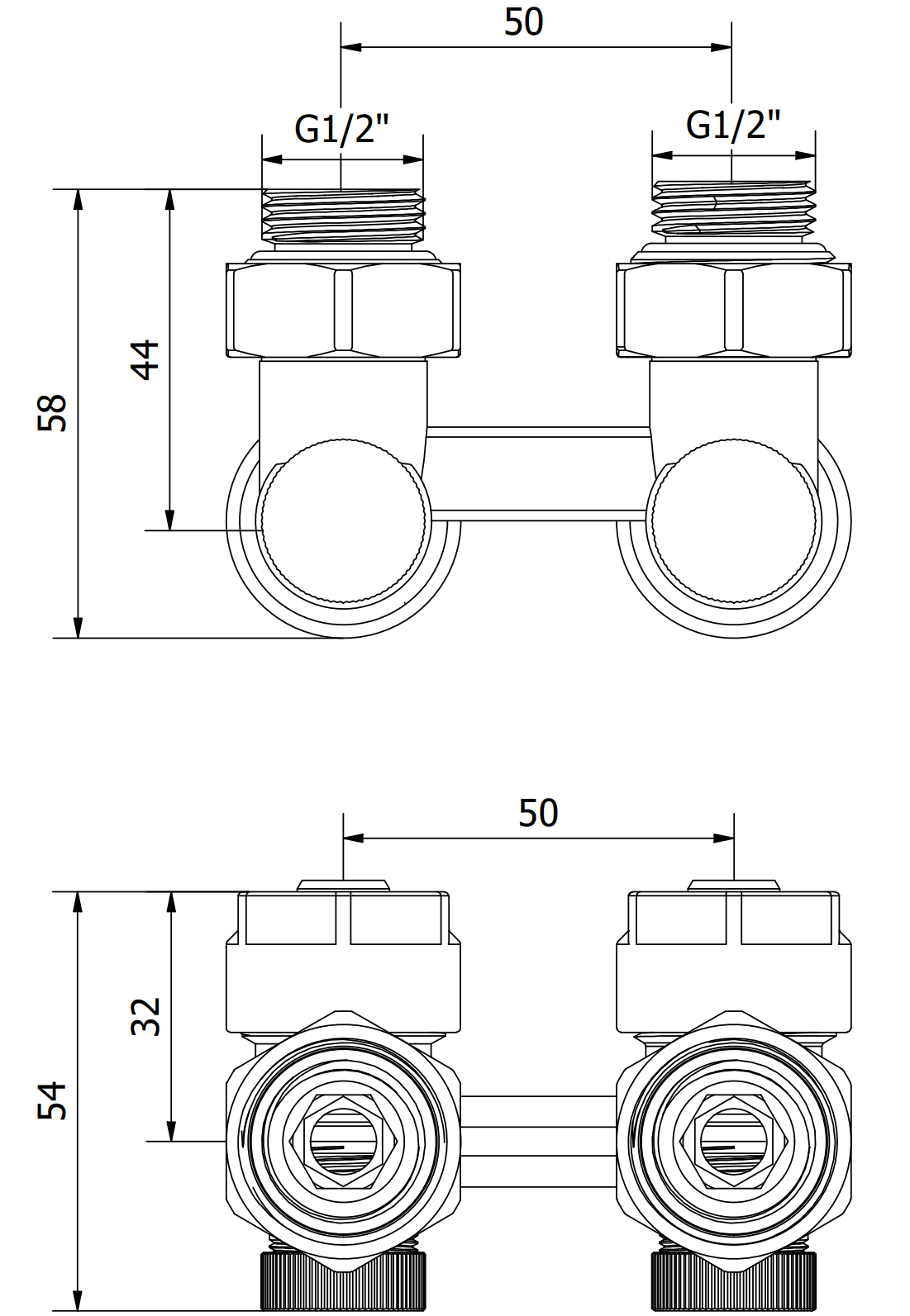 Supply and cut-off radiator valve