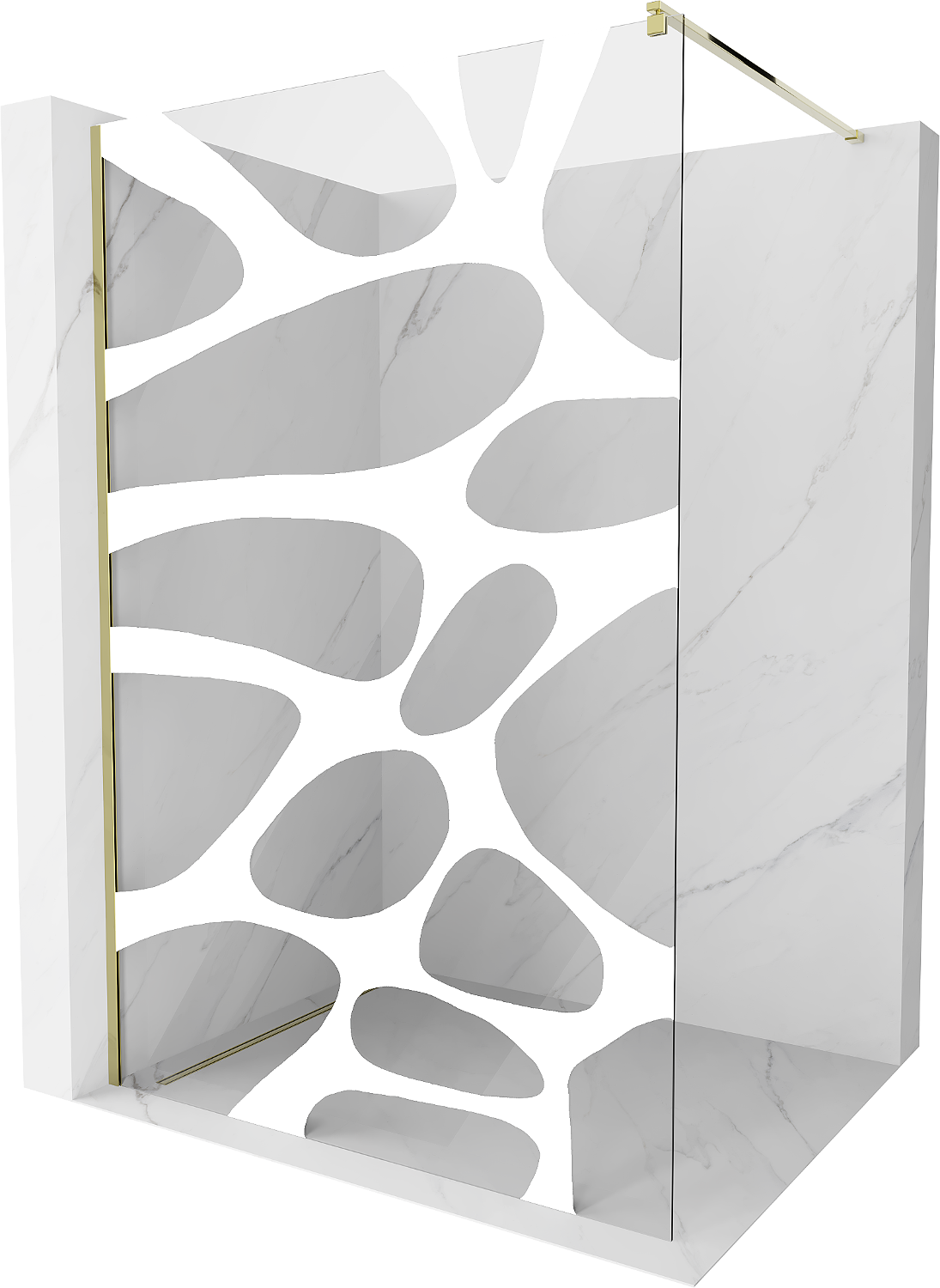 Mexen Kioto Walk-in Shower Wall 70 x 200 cm, Transparent/White Wave 8 mm, Gold - 800-070-101-50-97