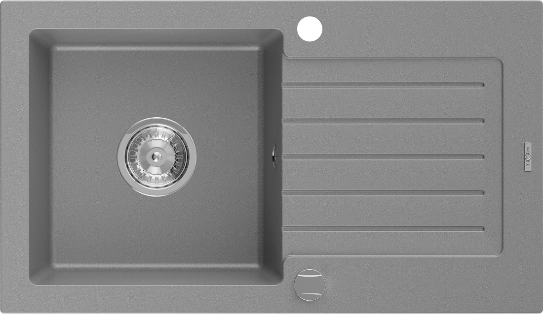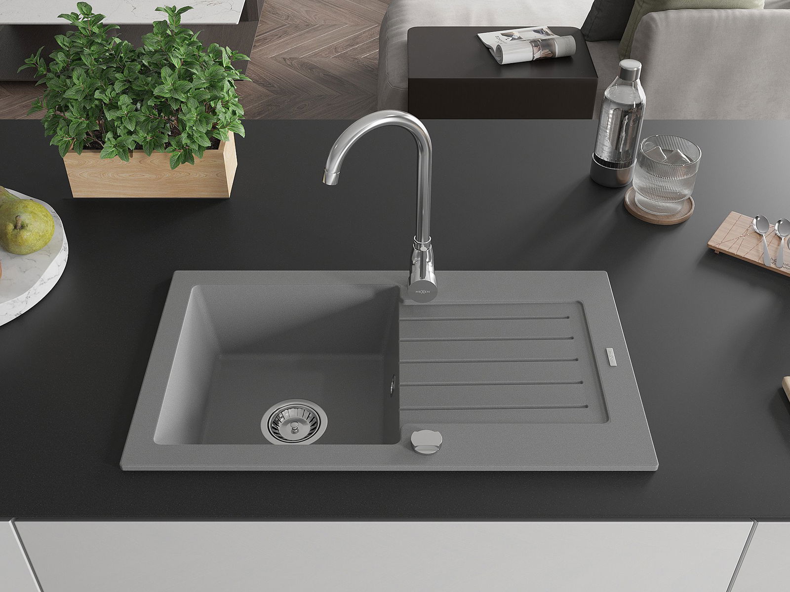 Mexen Pablo granite sink 1-bowl with drainer 752 x 436 mm, grey, chrome siphon - 6510751010-71