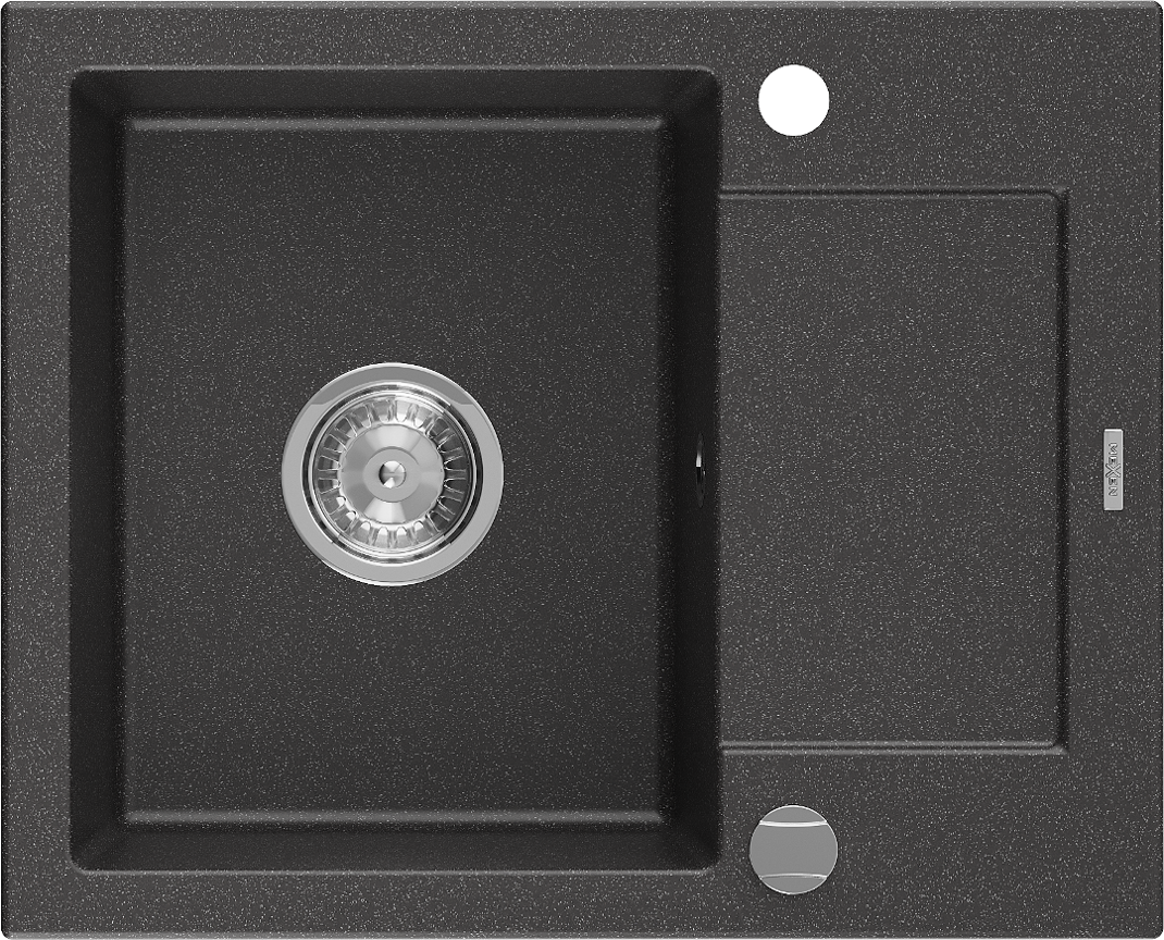 Mexen Enzo granite sink 1-bowl with drainer 576 x 465 mm, black speckled, chrome siphon - 6506571005-76