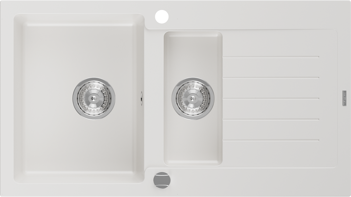 Mexen Matias granite sink 1.5-bowl with drainer 900 x 505 mm, white, chrome siphon - 6502901505-20