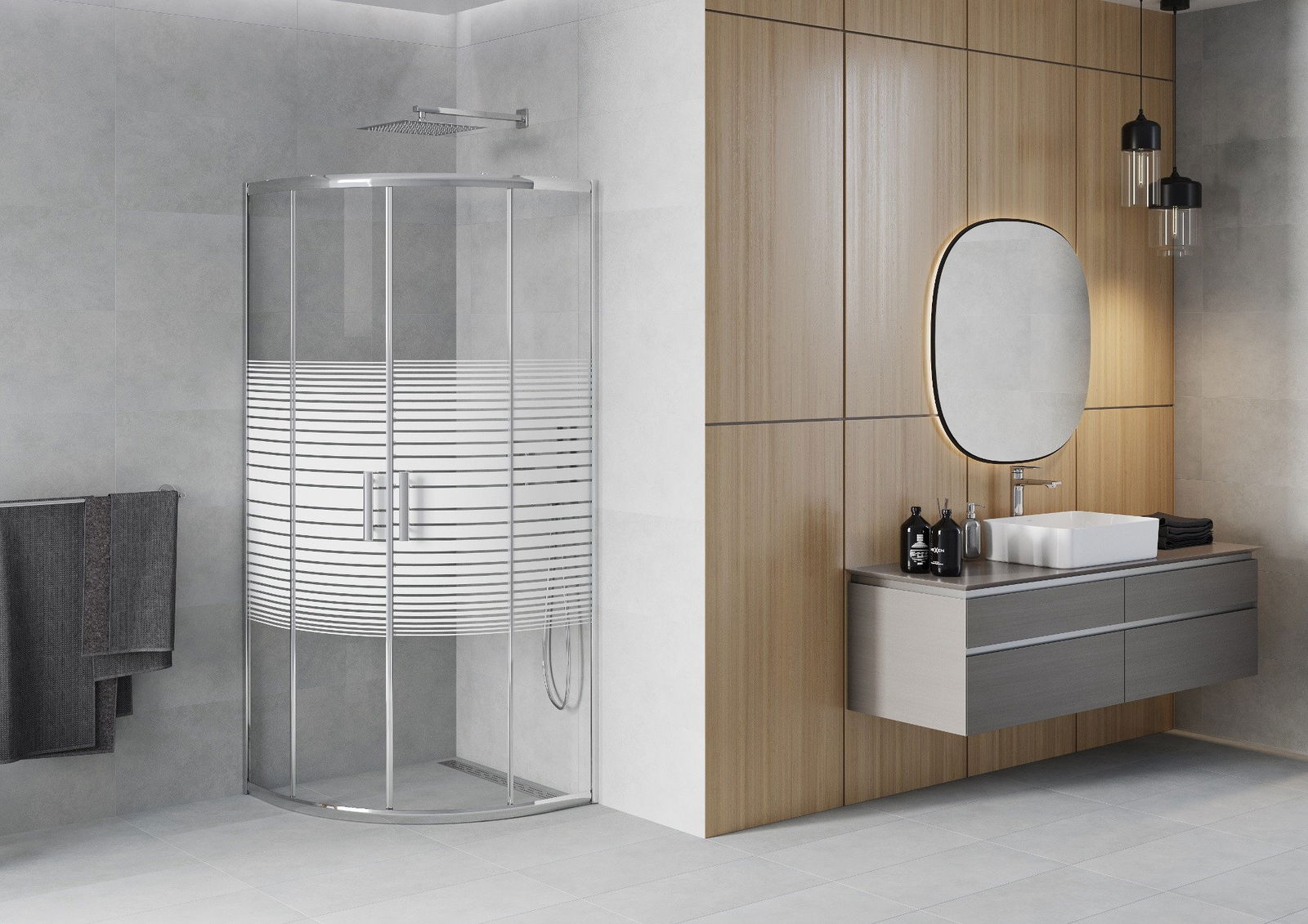 Mexen Rio semi-circular shower enclosure 80 x 80 cm, white stripes, chrome - 863-080-080-01-20