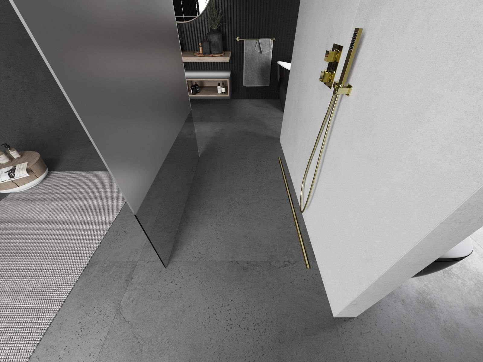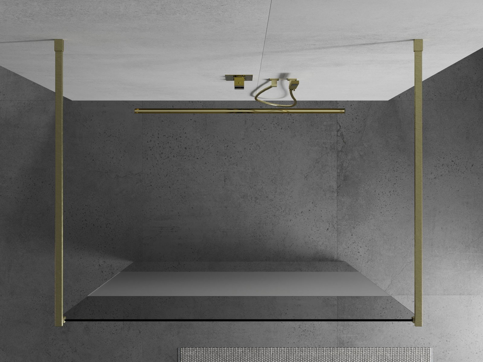Mexen Kioto freestanding shower wall 140 x 200 cm, transparent/frosted 8 mm, brushed gold - 800-140-002-55-35