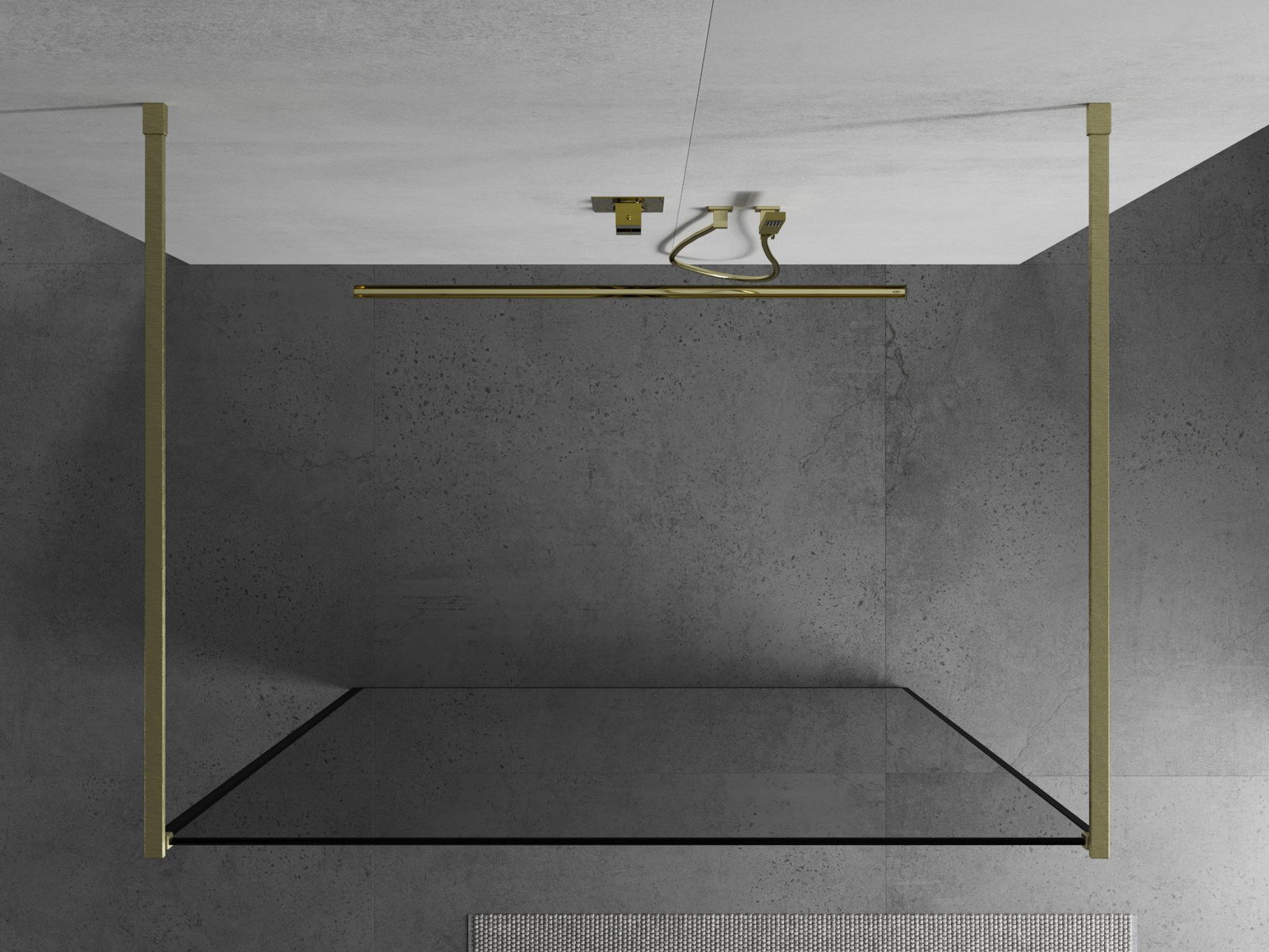 Mexen Kioto freestanding shower wall 160 x 200 cm, black frame 8 mm, brushed gold - 800-160-002-55-70