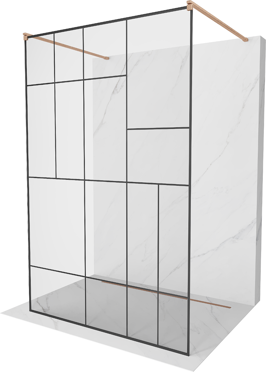 Mexen Kioto stand-alone shower wall 100 x 200 cm, black pattern 8 mm, brushed copper - 800-100-002-65-78