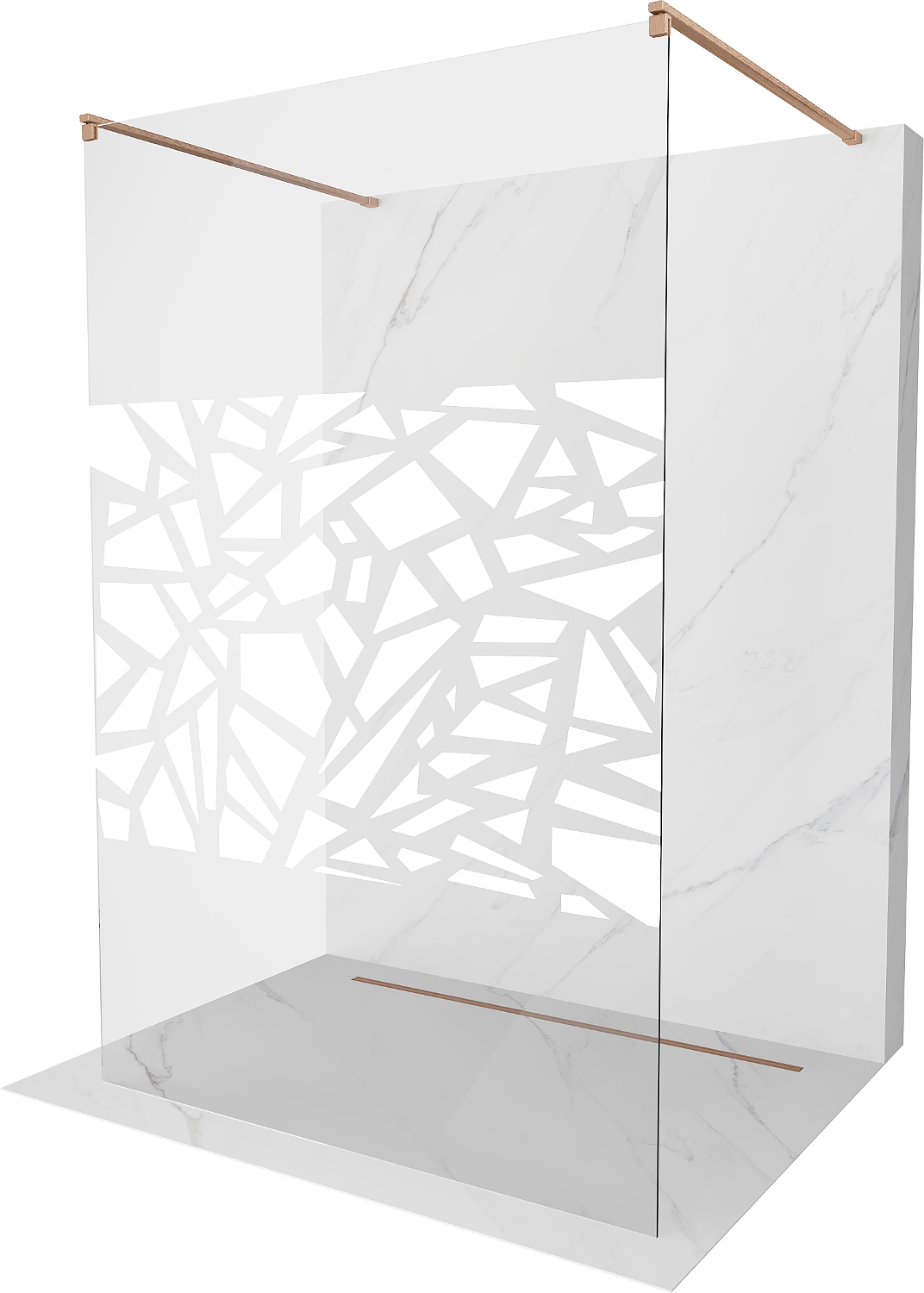 Mexen Kioto freestanding shower screen 100 x 200 cm, white pattern 8 mm, brushed copper - 800-100-002-65-85