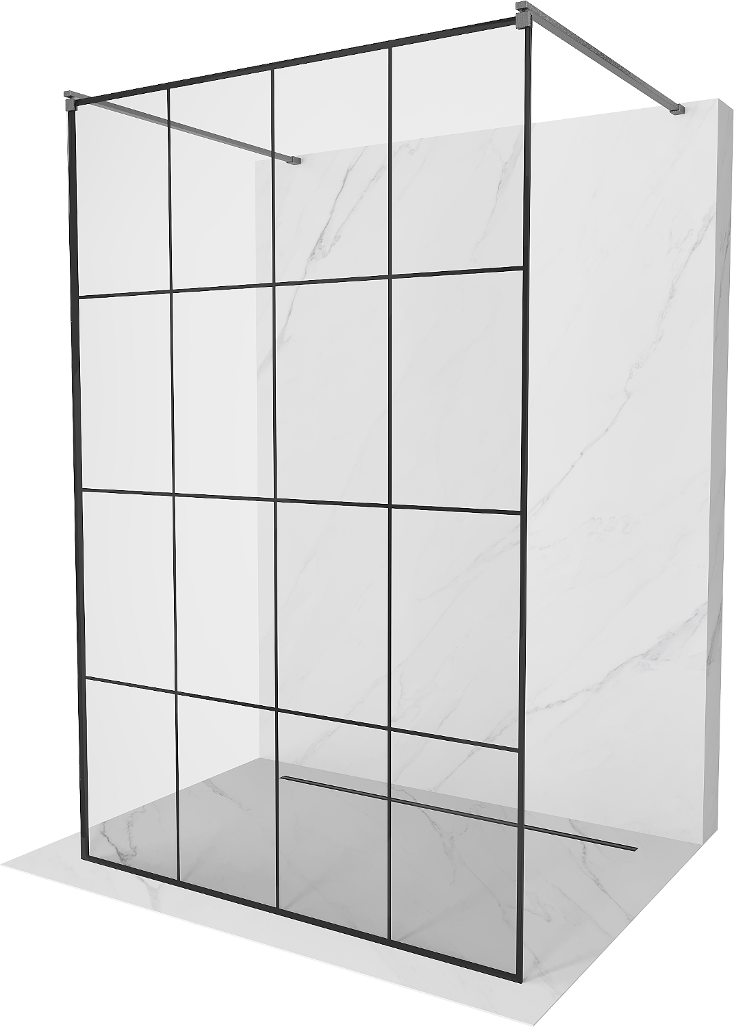 Mexen Kioto freestanding shower wall 140 x 200 cm, black grid 8 mm, brushed gun gray - 800-140-002-66-77