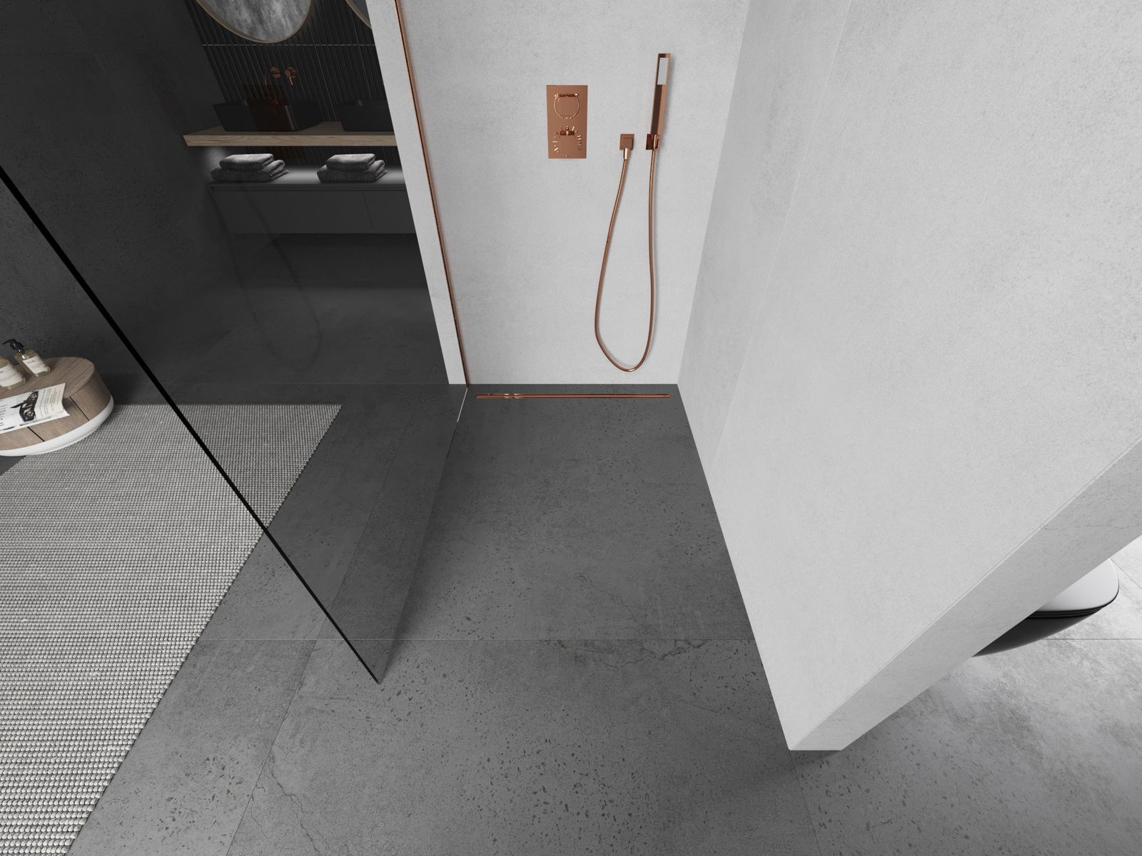 Mexen Kioto Walk-in Shower Wall 150 x 200 cm, transparent 8 mm, brushed bronze - 800-150-101-65-00