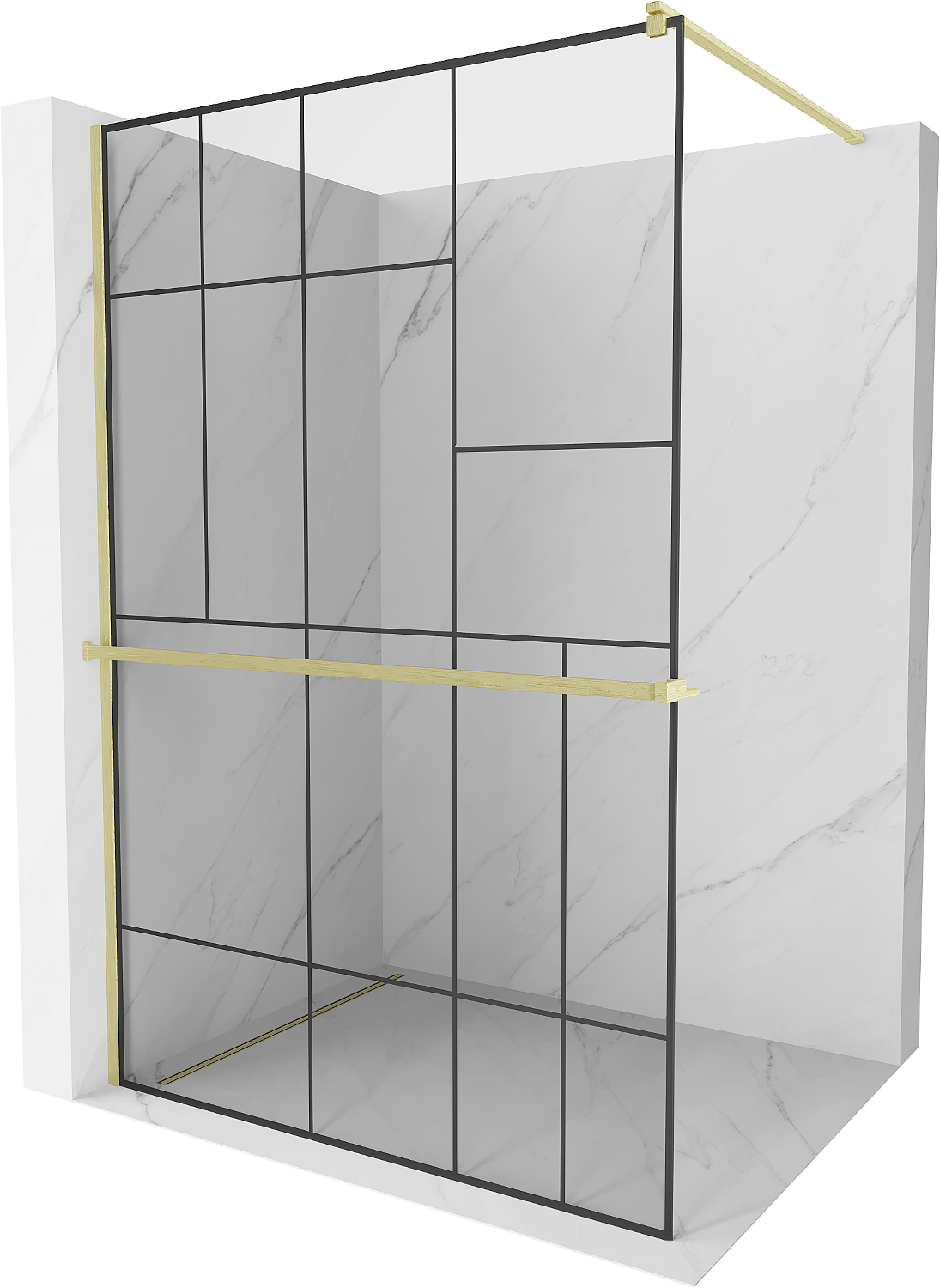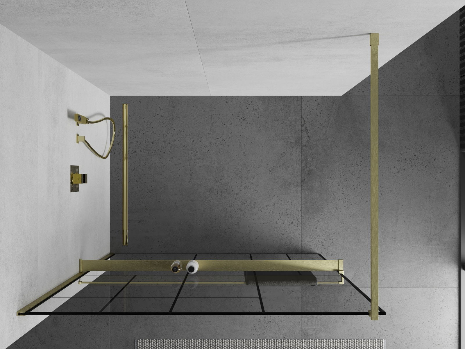 Mexen Kioto+ Shower Wall with Shelf Walk-in 70 x 200 cm, Black Pattern, Brushed Gold - 800-070-121-55-78