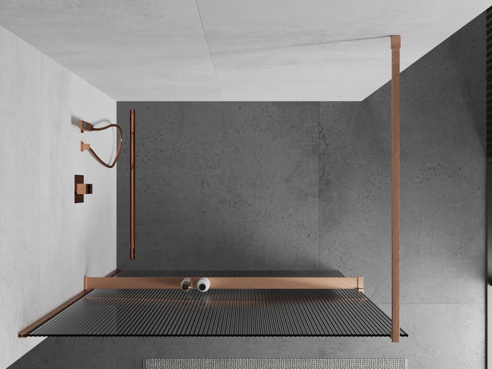 Mexen Kioto+ shower wall with shelf Walk-in 140 x 200 cm, stripes, brushed copper - 800-140-121-65-09