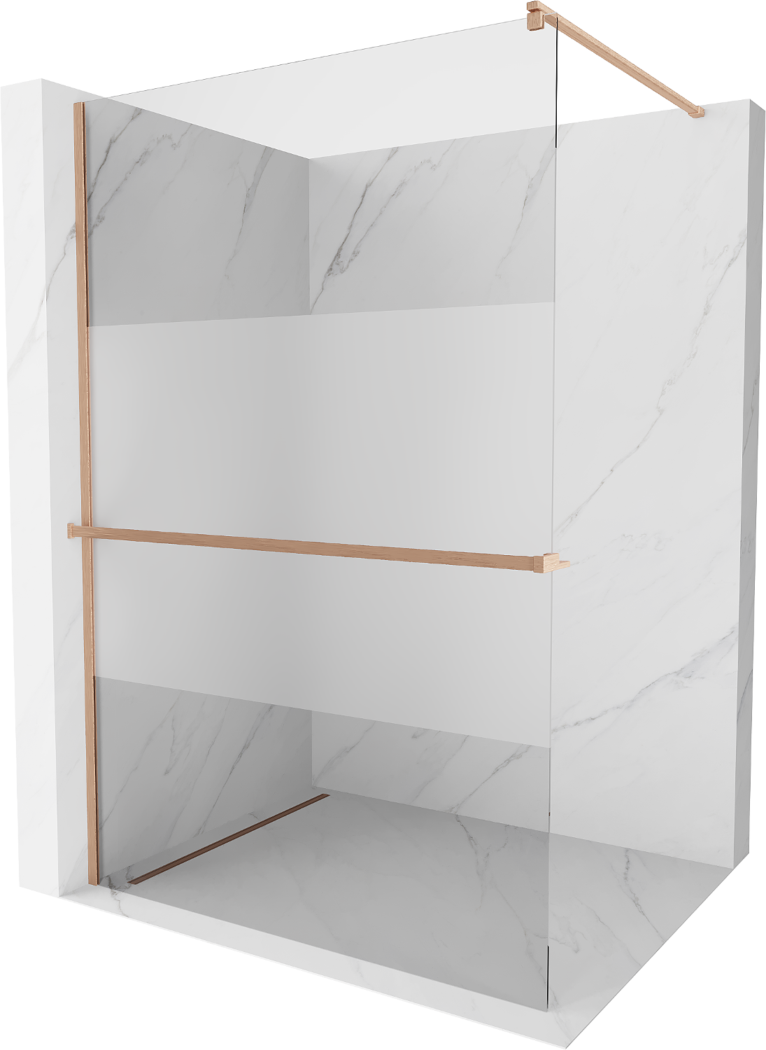 Mexen Kioto+ shower wall with Walk-in shelf 100 x 200 cm, transparent/frosted, brushed copper - 800-100-121-65-35