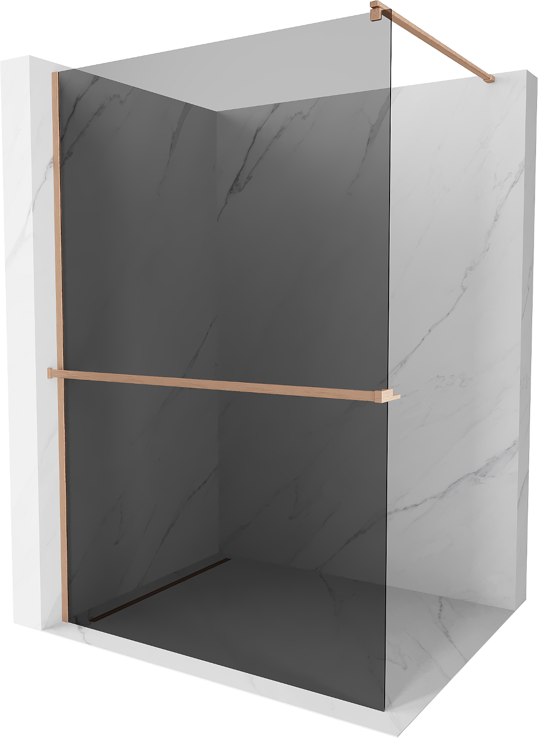 Mexen Kioto+ shower wall with Walk-in shelf 120 x 200 cm, graphite, brushed copper - 800-120-121-65-40