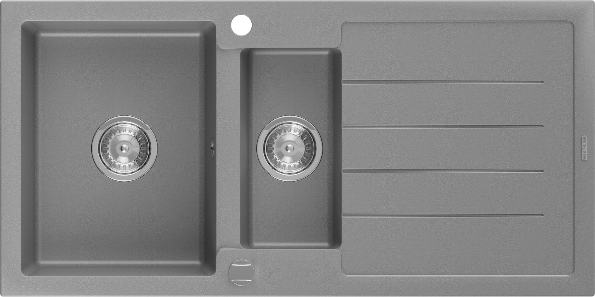 Mexen Andres granite sink 1.5-bowl with drainer 1000 x 500 mm, grey, chrome siphon - 6515101510-71
