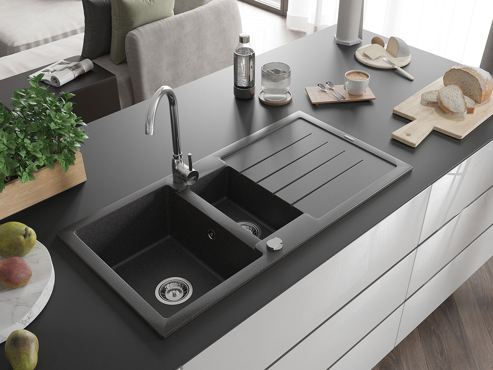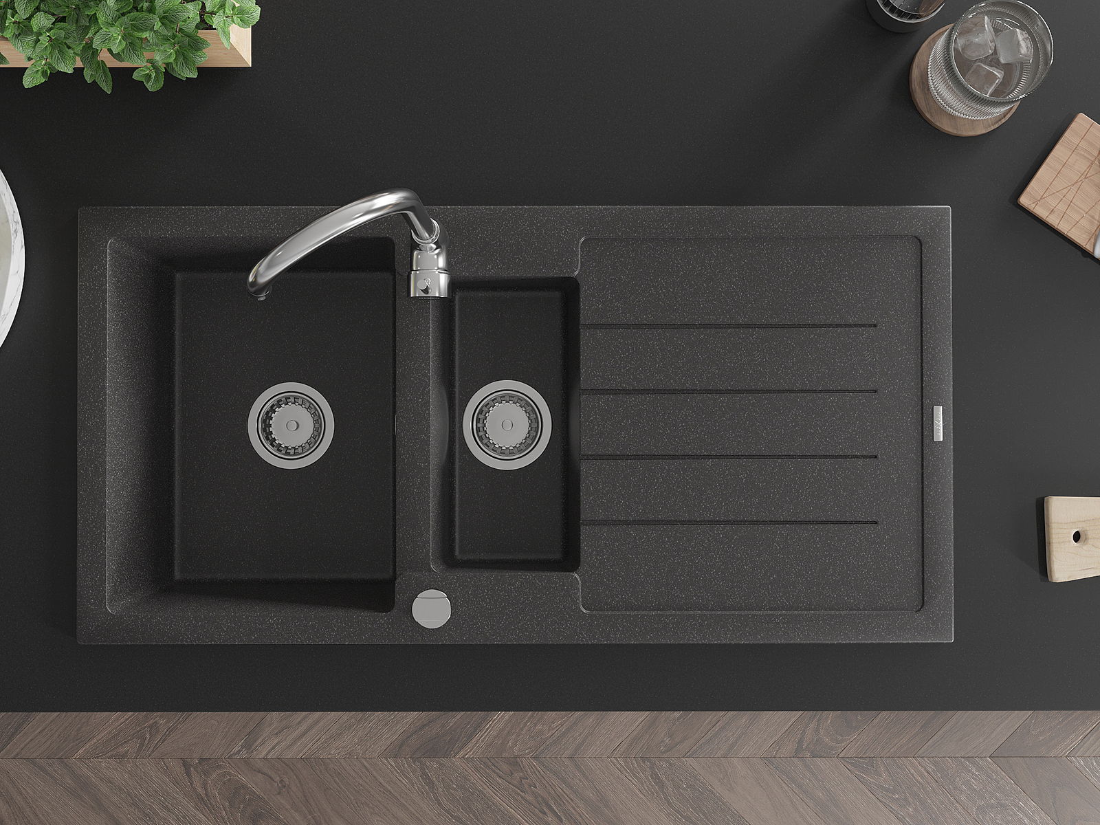 The sink is made of high quality granite. It is an elegant and, above all, practical complement to every kitchen, regardless of its style. High quality and granite durability ensure many years of use.