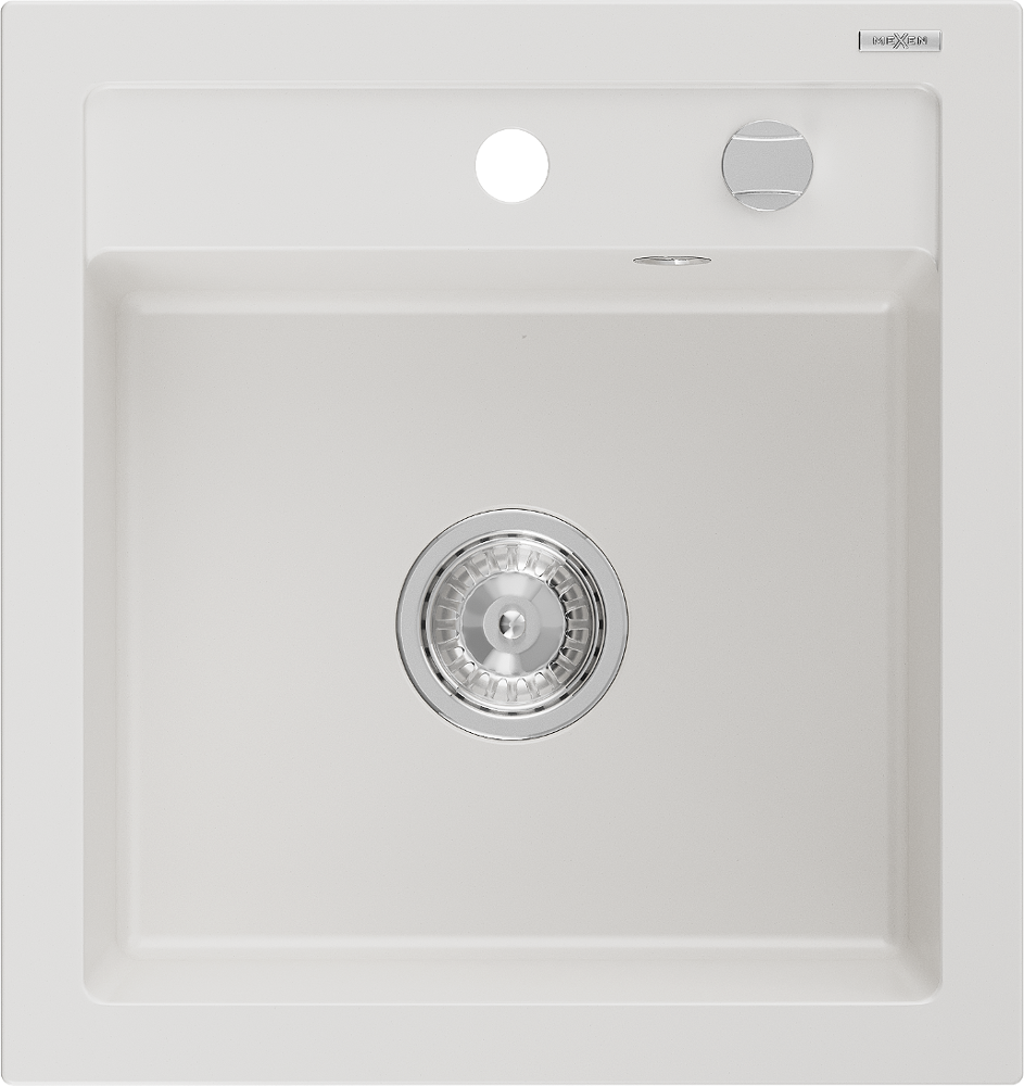 Mexen Vito granite kitchen sink 1-bowl 520 x 490 mm, white, chrome siphon - 6503521000-20