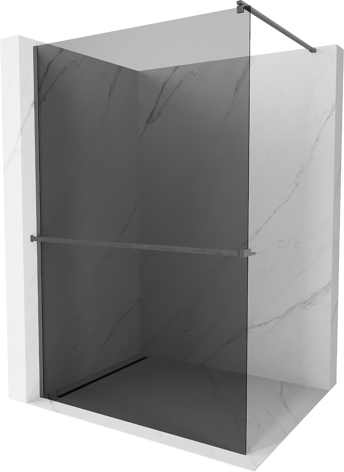 Mexen Kioto+ shower wall with shelf Walk-in 130 x 200 cm, graphite, brushed gun gray - 800-130-121-66-40