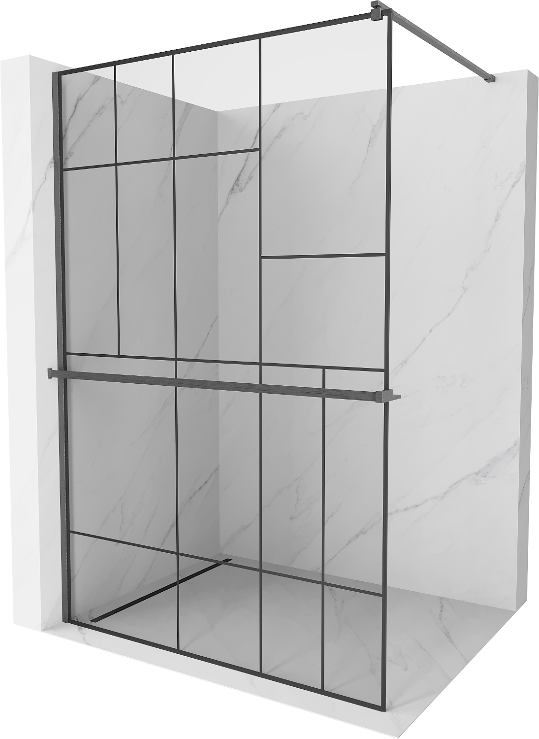 Mexen Kioto+ shower wall with shelf Walk-in 100 x 200 cm, black pattern, gun gray brushed - 800-100-121-66-78