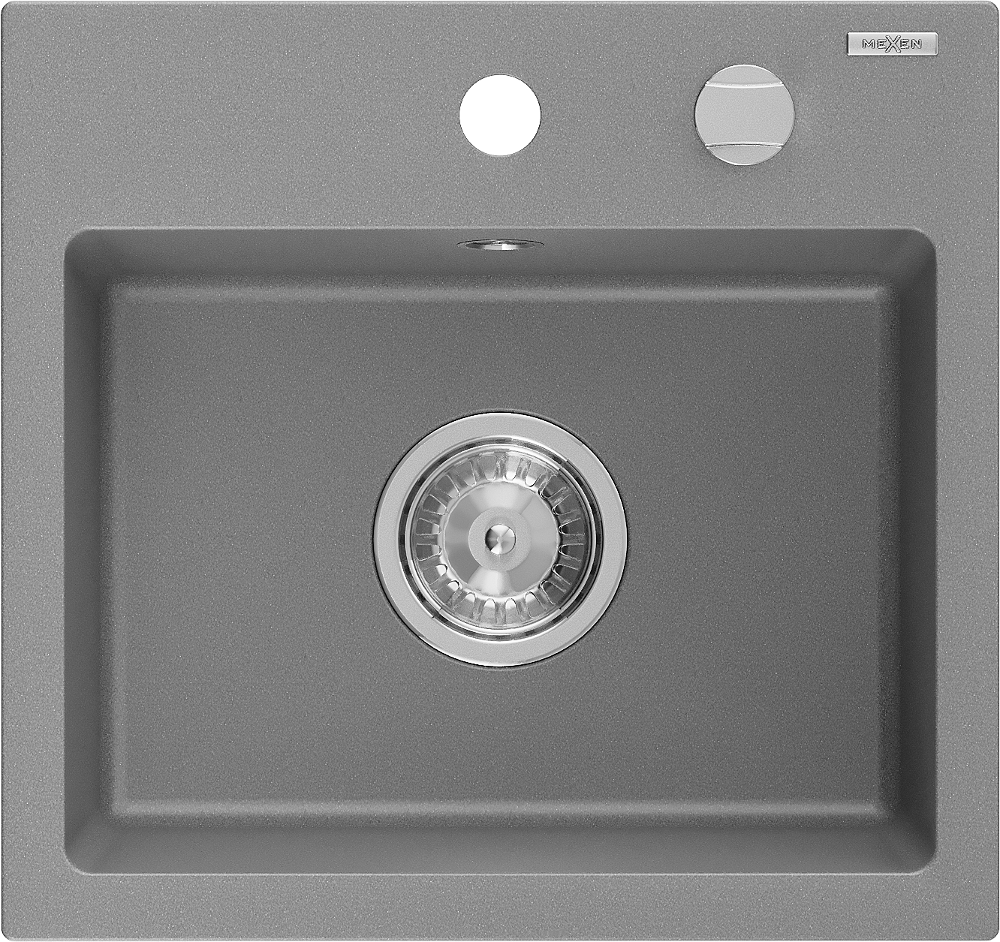 Mexen Milo 1-bowl Granite Sink 435 x 410 mm, Grey, Chrome Siphon - 6505441000-71