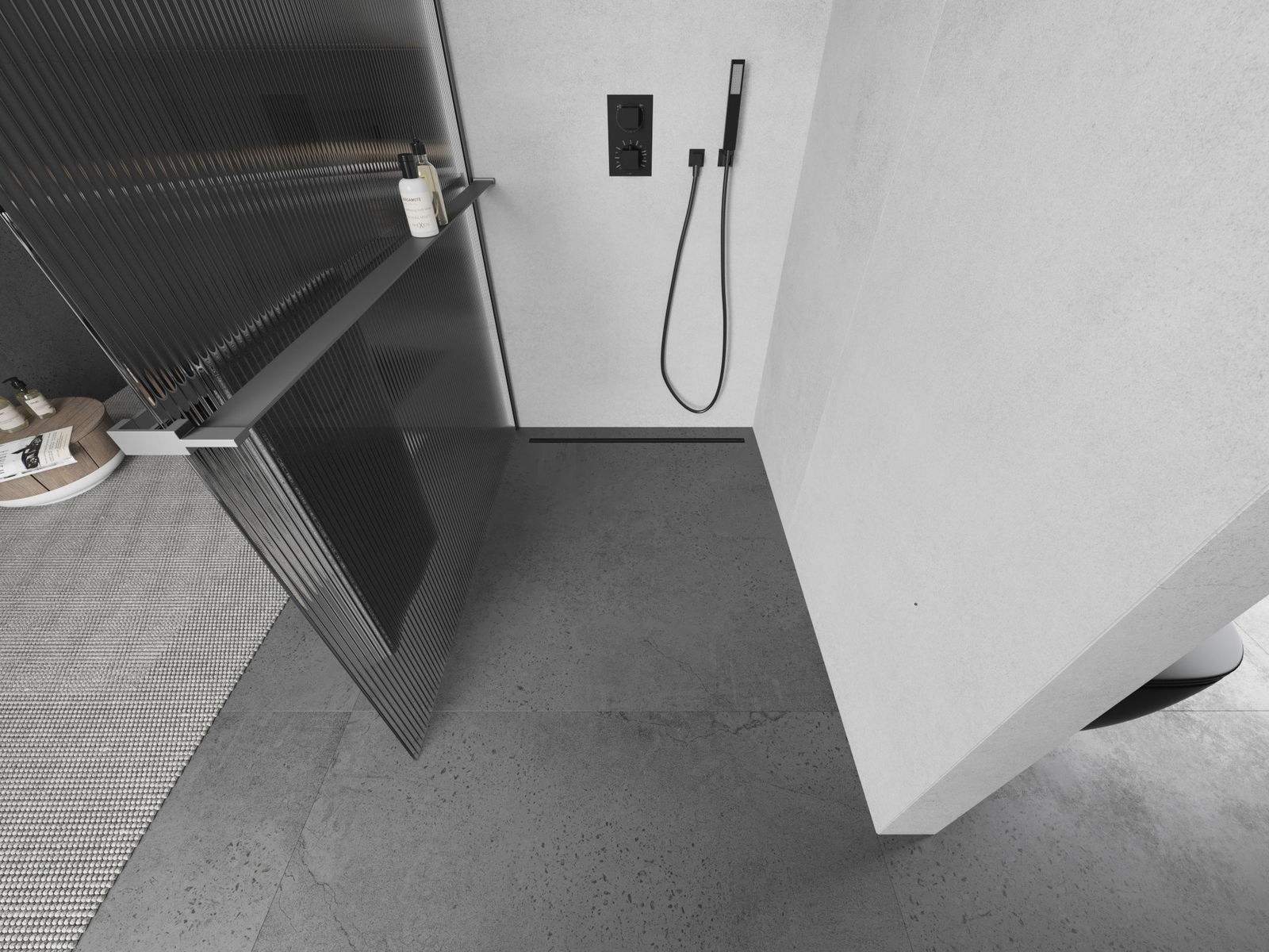 Mexen Kioto+ shower wall with Walk-in shelf 90 x 200 cm, stripes, gun metal - 800-090-121-95-09