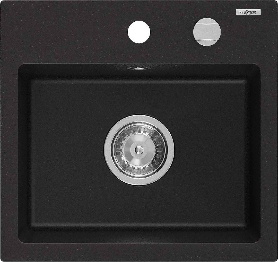 Mexen Milo Granite Sink 1-Bowl 435 x 410 mm, Black, Chrome Siphon - 6505441000-77