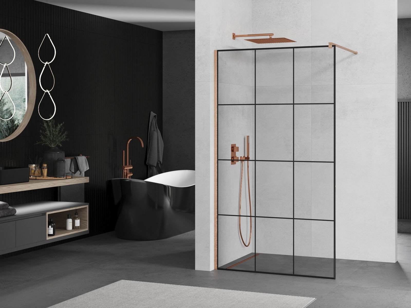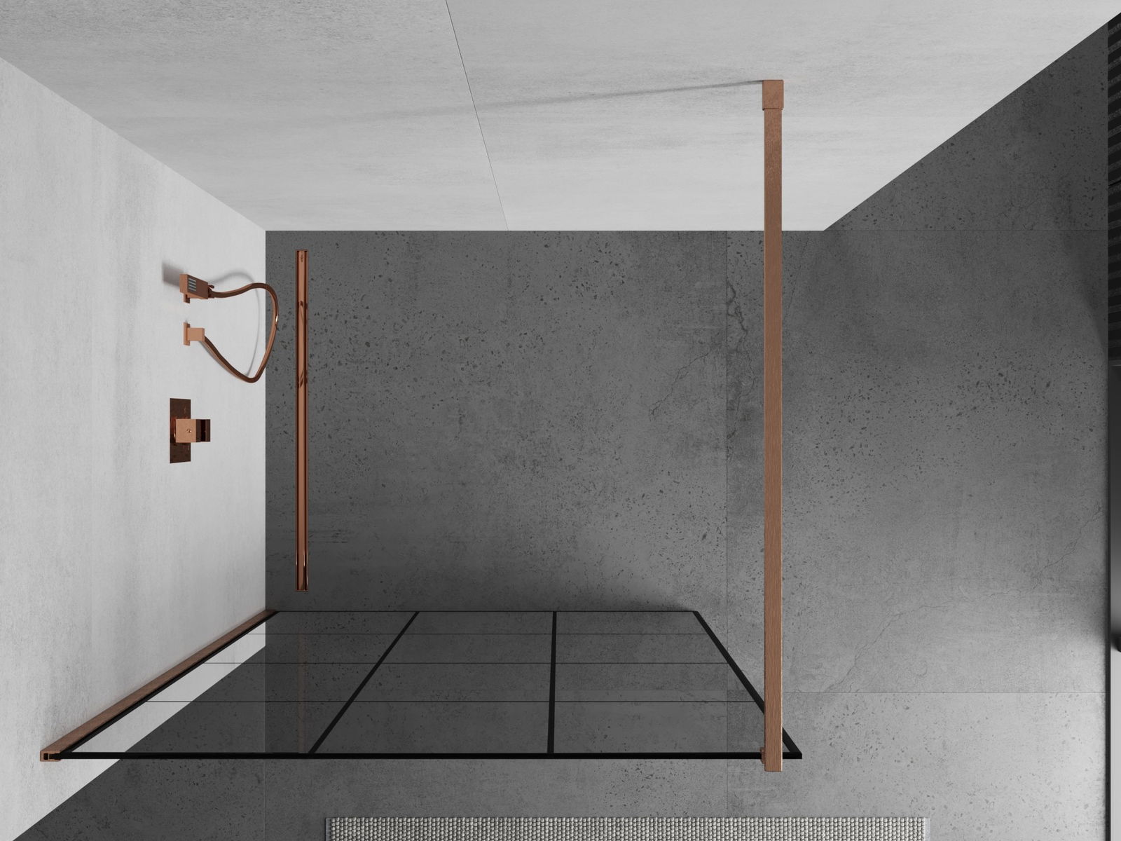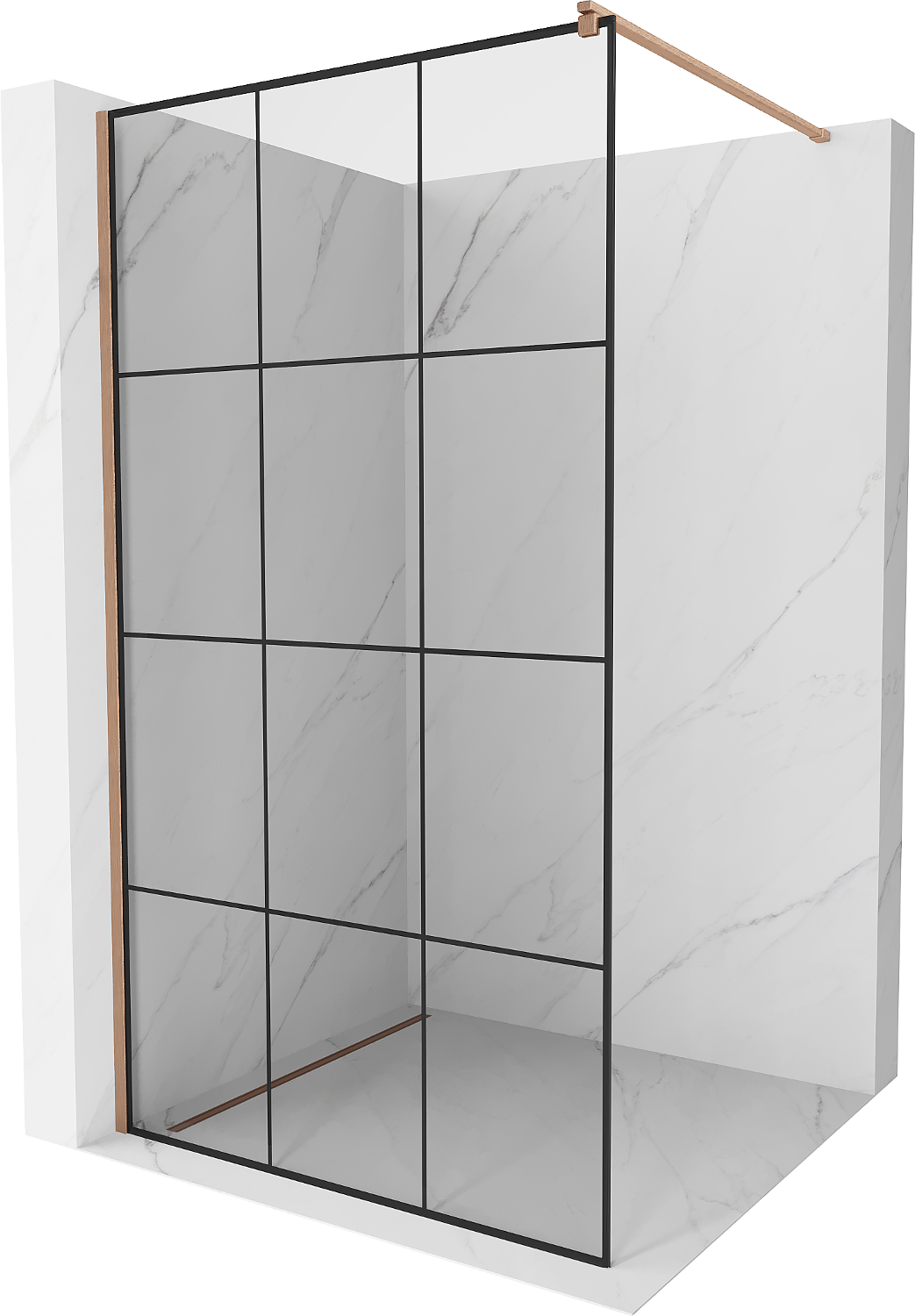 Mexen Kioto Walk-in Shower Wall 110 x 200 cm, Black Grid 8 mm, Brushed Copper - 800-110-101-65-77