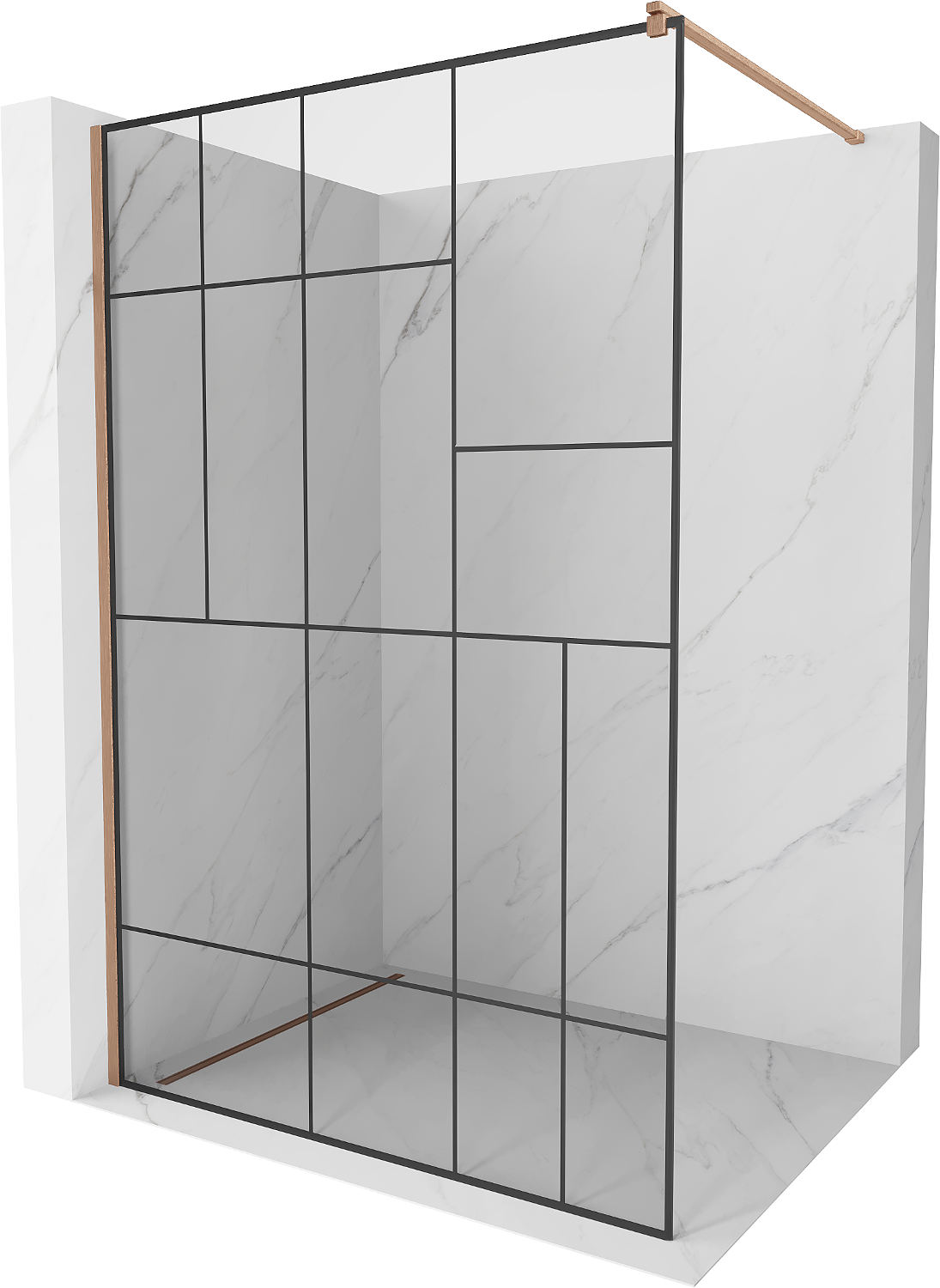 Mexen Kioto Walk-in Shower Screen 130 x 200 cm, Black Pattern 8 mm, Brushed Copper - 800-130-101-65-78