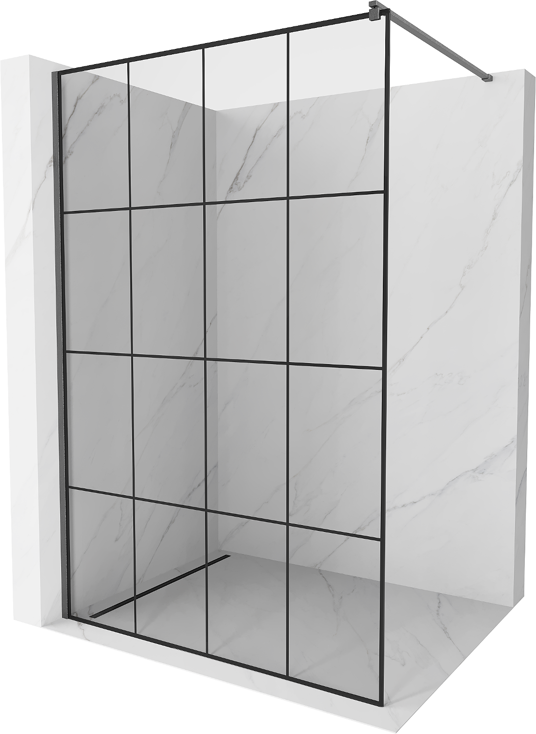 Mexen Kioto Walk-in Shower Wall 130 x 200 cm, Black Grid 8 mm, Brushed Gun Gray - 800-130-101-66-77