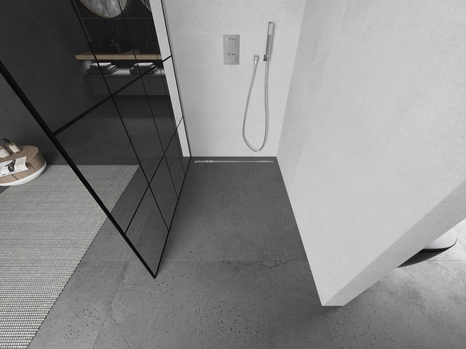 Mexen Kioto Walk-in Shower Screen 160 x 200 cm, Black Grid 8 mm, Brushed Nickel - 800-160-101-97-77