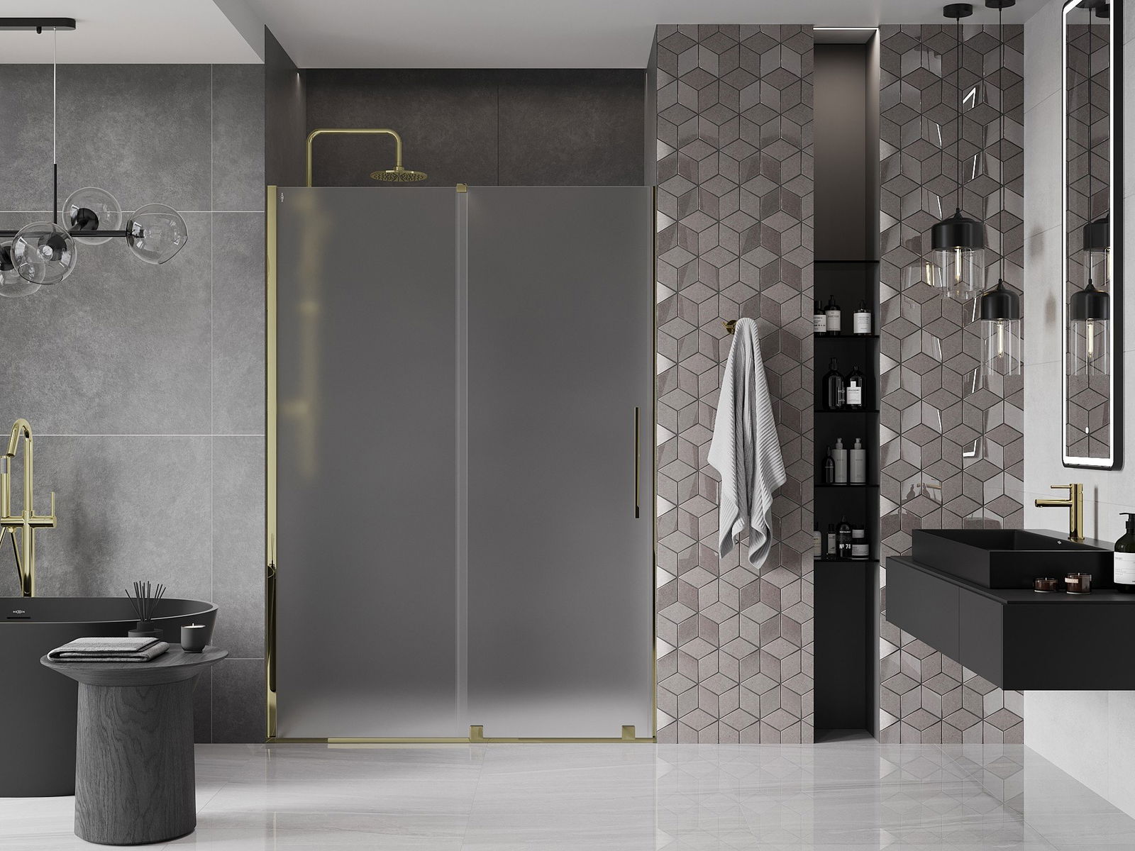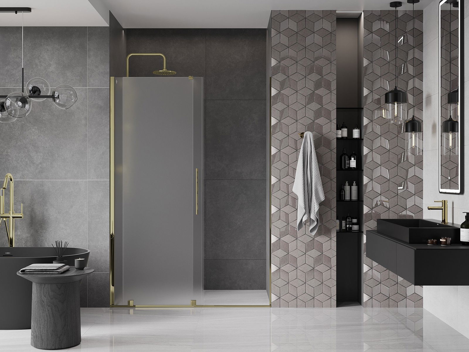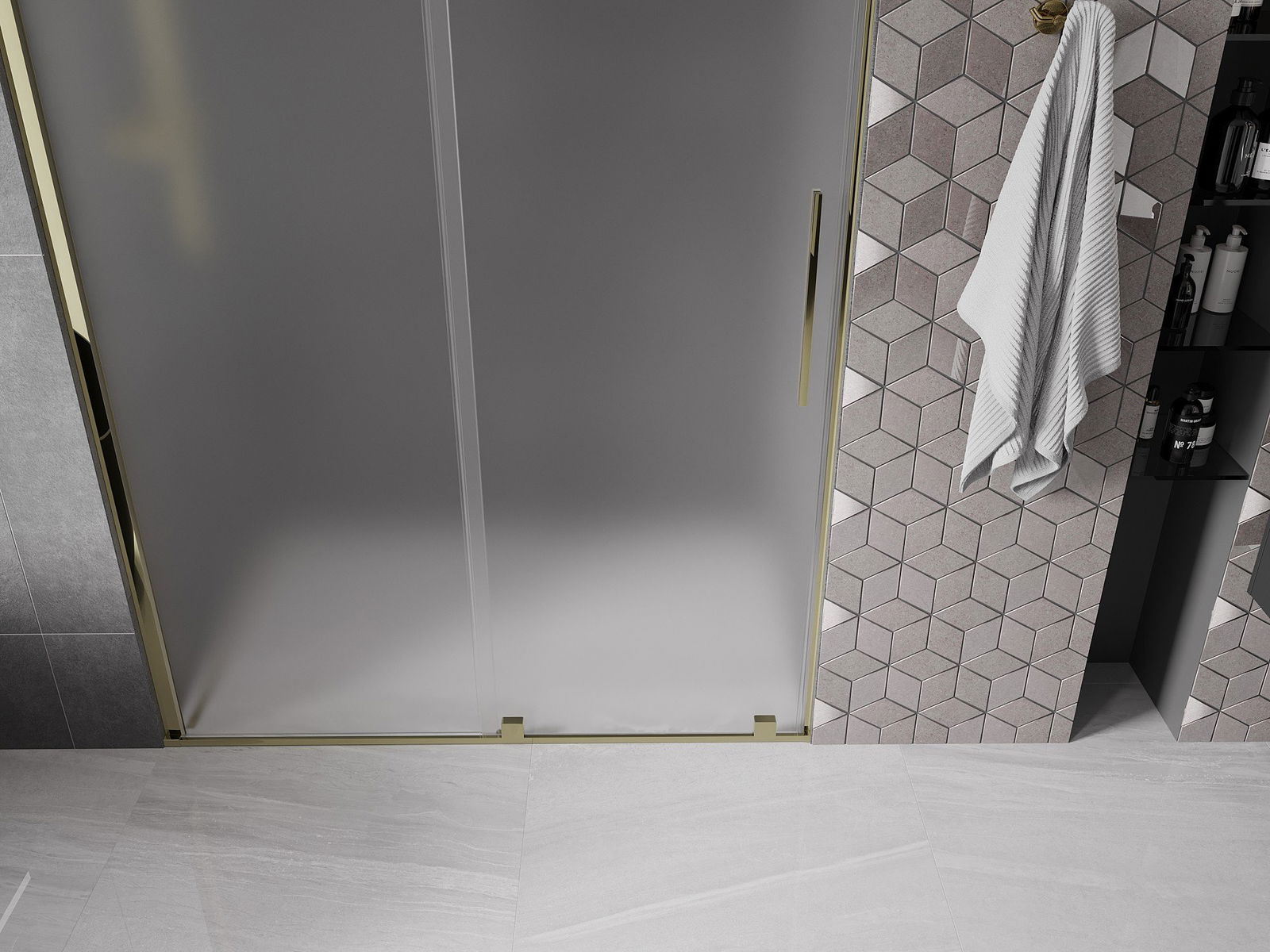 A handy and convenient handle made of stainless steel. The stylish shape combined with a finish that matches the color of the profiles gives a modern and stylish look, highlighting the aesthetics of any bathroom.