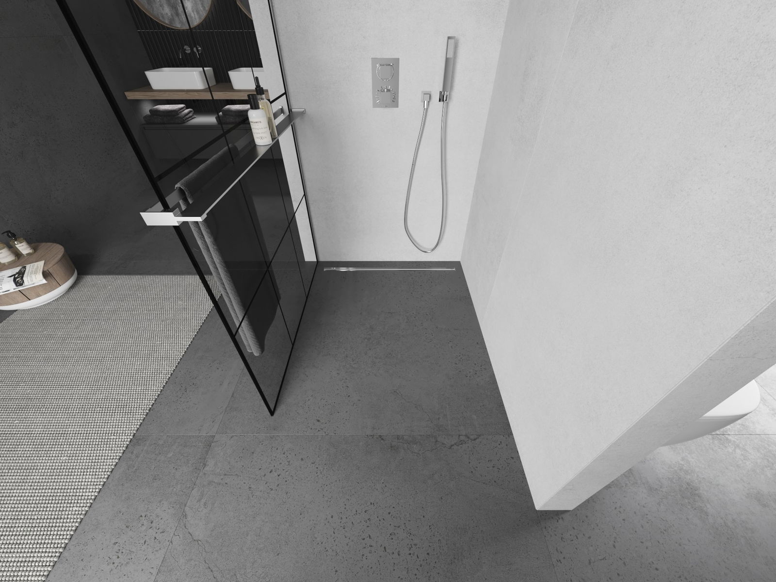The towel handle in the shower wall is a very practical and convenient solution. During bathing, the towel is always at your fingertips, facilitating free use. It is also an ideal place to dry the towel.
