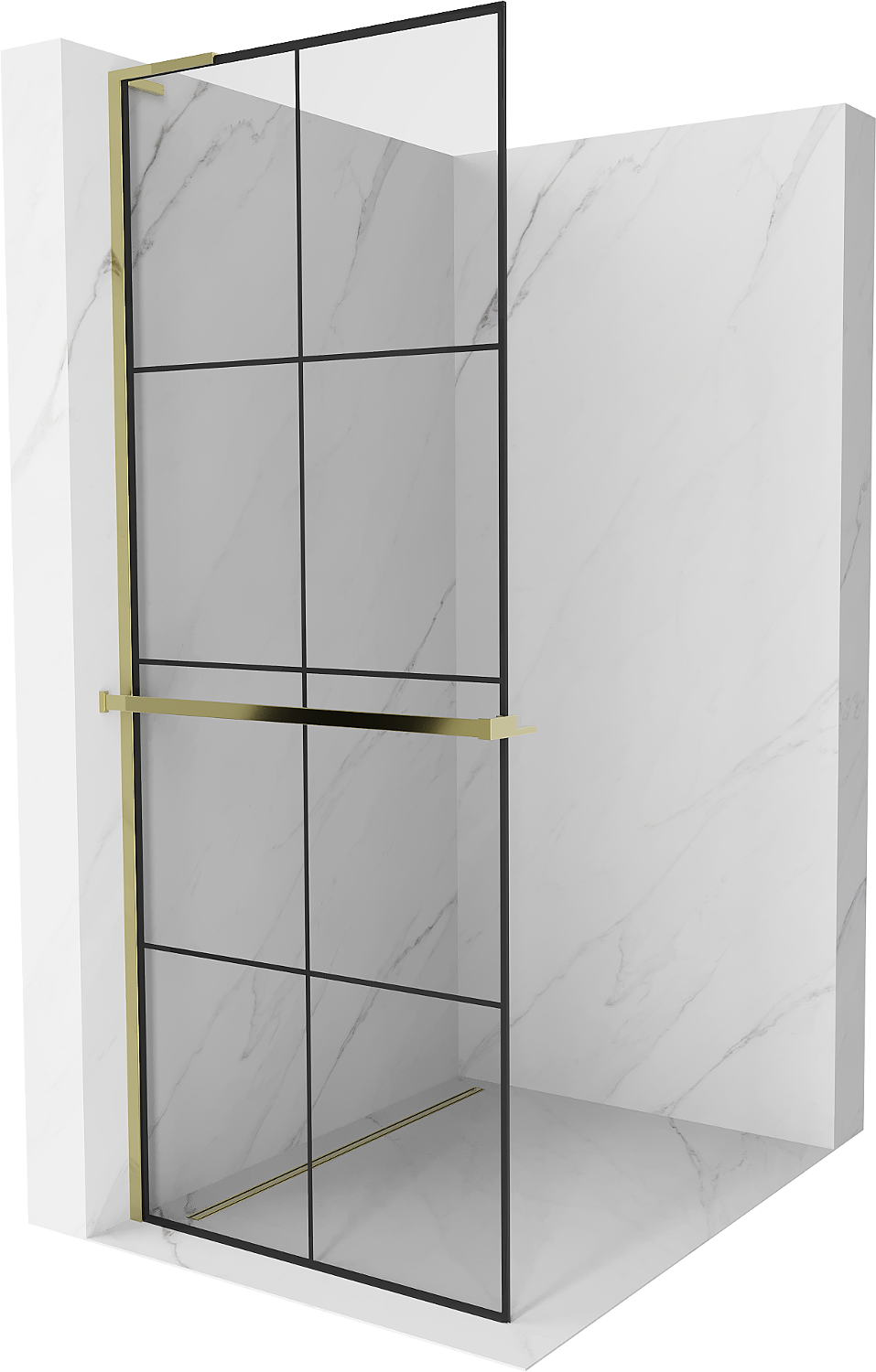 Mexen Kioto+ L Shower Wall with Shelf Walk-in 80 x 200 cm, Black Grid, Gold - 800-080-123-50-77