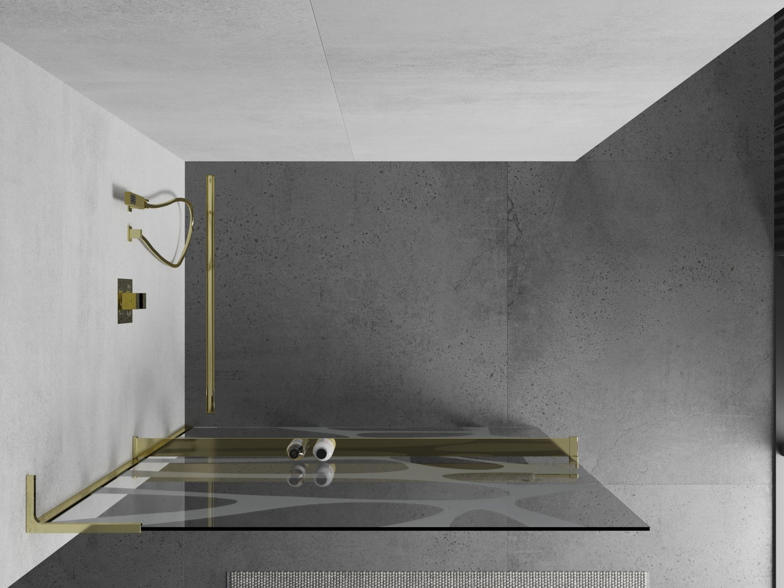 Mexen Kioto+ L shower panel with shelf Walk-in 100 x 200 cm, white wave, gold - 800-100-123-50-97