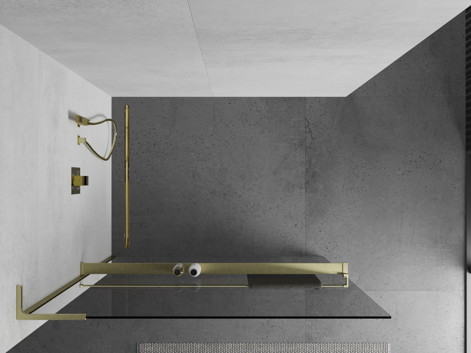 Mexen Kioto+ L shower wall with Walk-in shelf 95 x 200 cm, transparent, brushed gold - 800-095-123-55-00