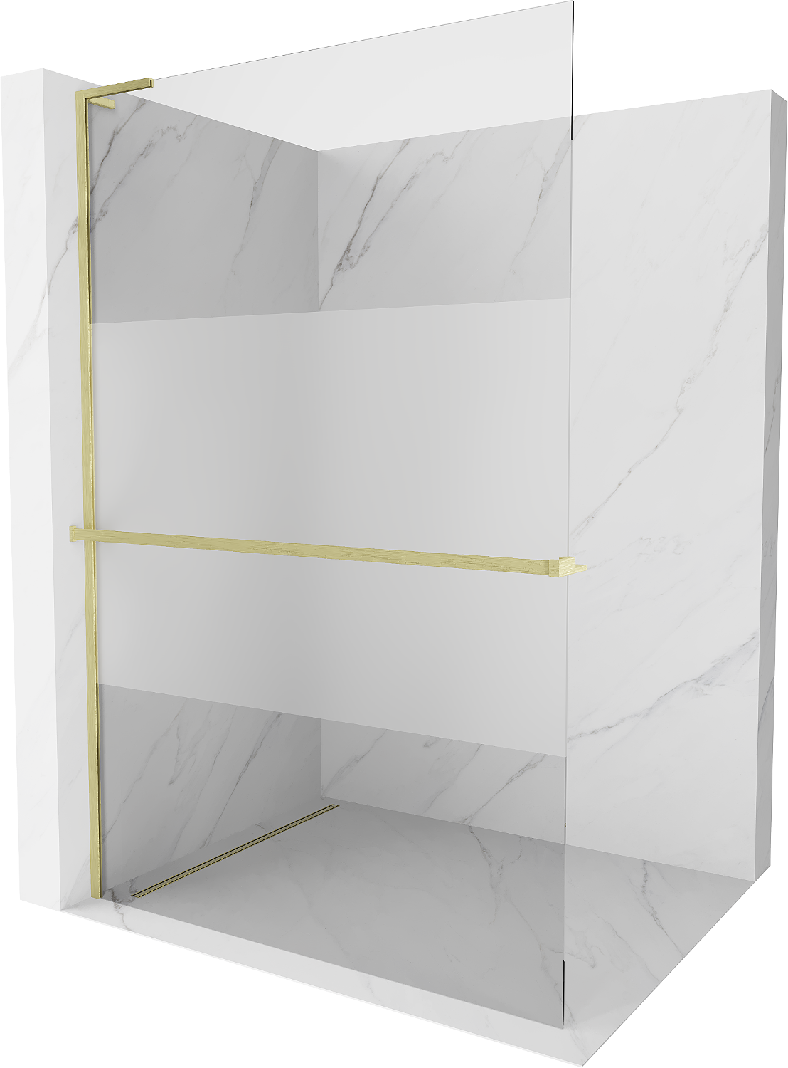 Mexen Kioto+ L Shower Screen with Shelf Walk-in 70 x 200 cm, Transparent/Frosted, Brushed Gold - 800-070-123-55-35