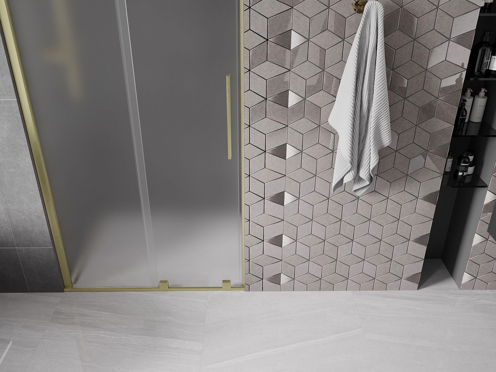 A handy and convenient handle made of stainless steel. The stylish shape combined with a finish that matches the color of the profiles gives a modern and stylish look, highlighting the aesthetics of any bathroom.